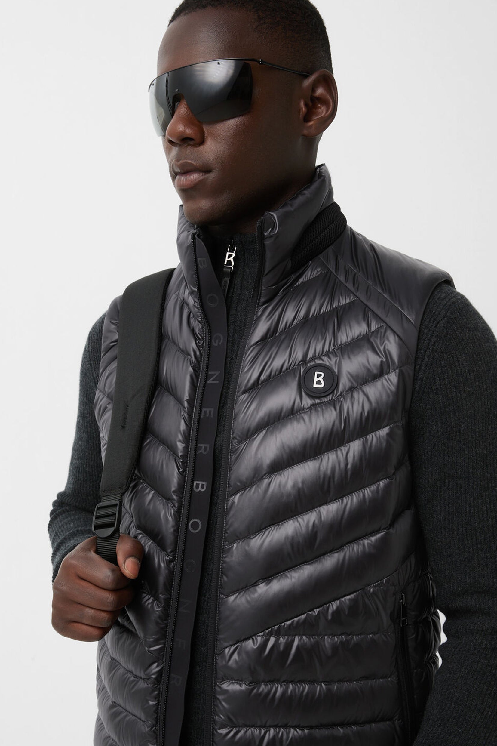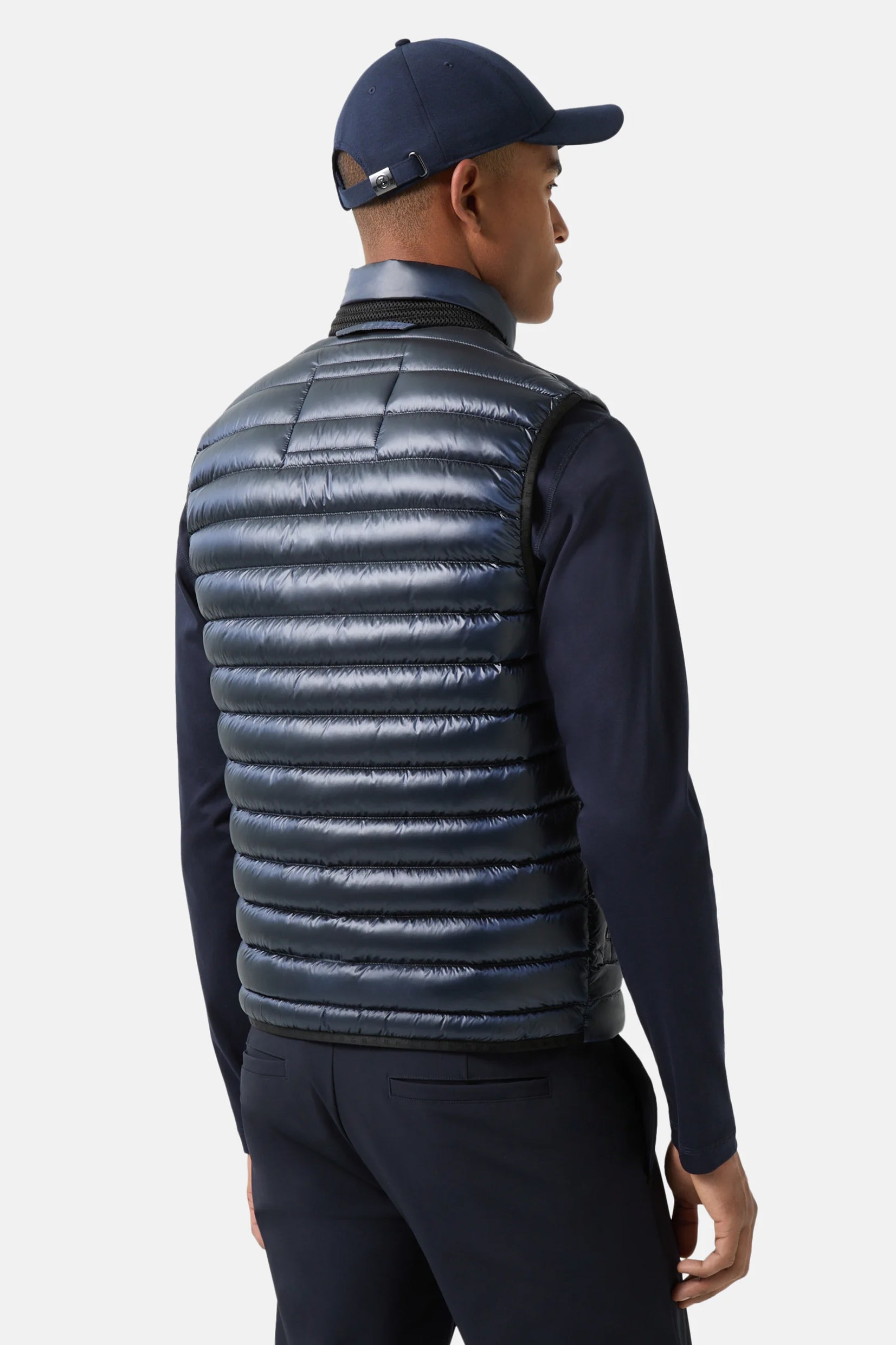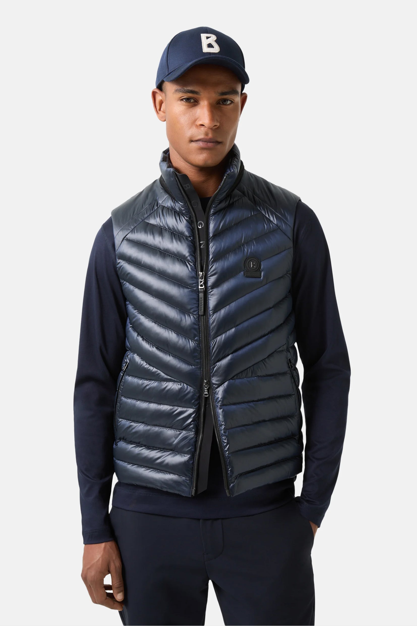 Prsluk Lasse donosi spoj sportskog duha i moderne elegancije. Izrađen je od najlona sa dijagonalnim i glatkim prošivima, dok elastični detalji i prepoznatljiva gumena B oznaka naglašavaju luksuzni karakter. Zahvaljujući vodoodbojnoj završnoj obradi i laganoj postavi sa mešavinom paperja, ovaj model pruža toplinu i udobnost bez dodatne težine.