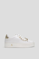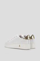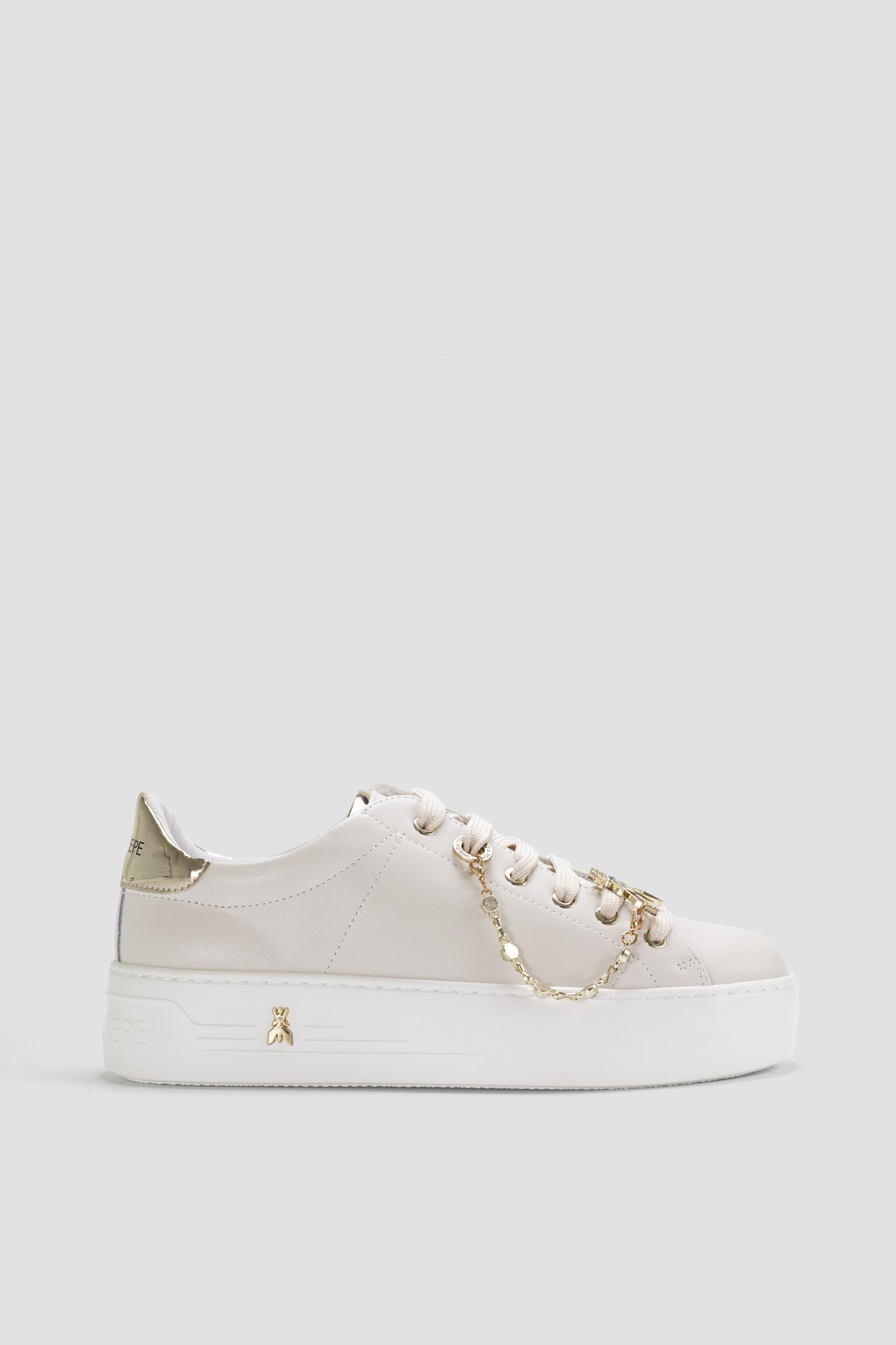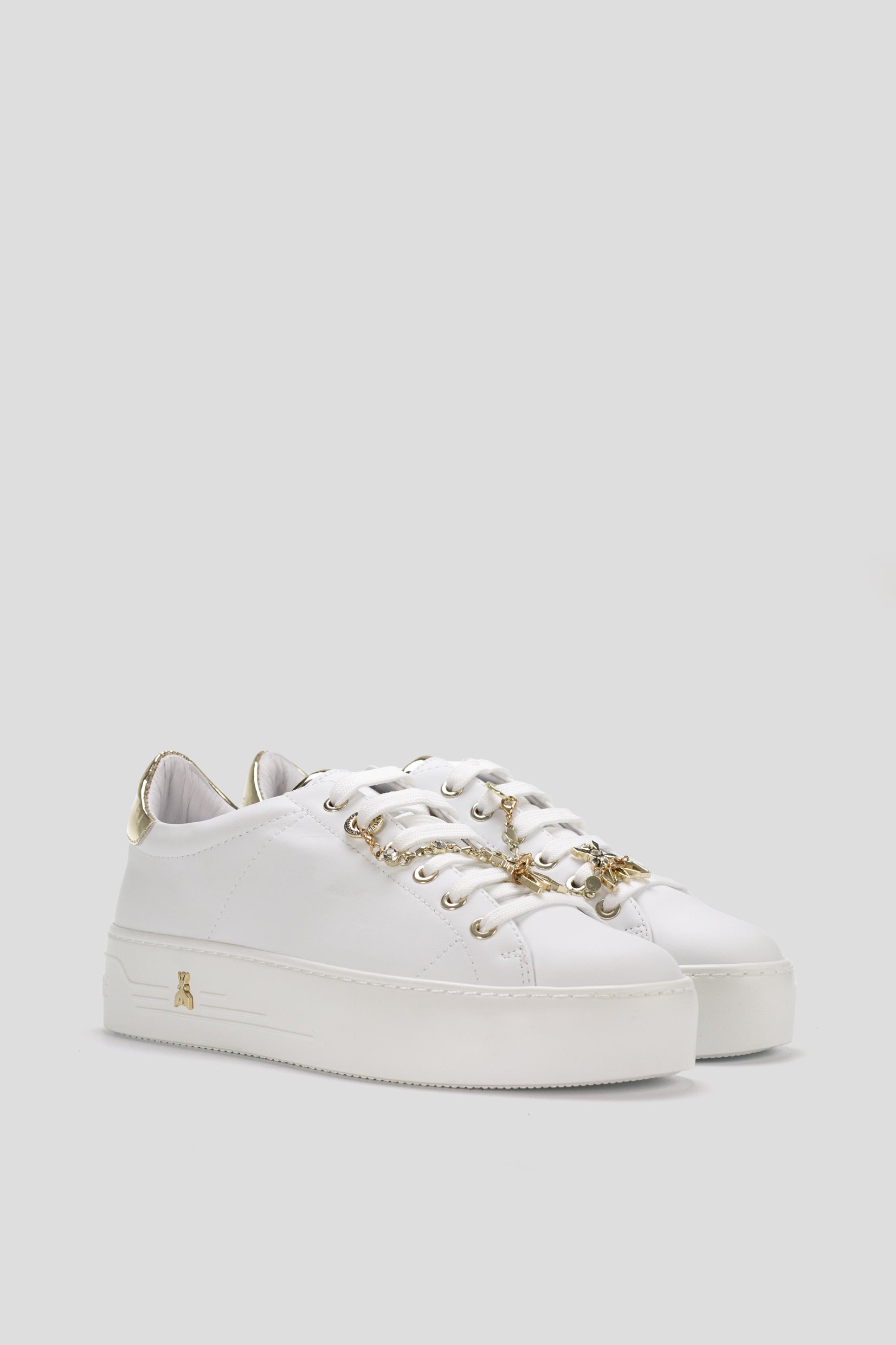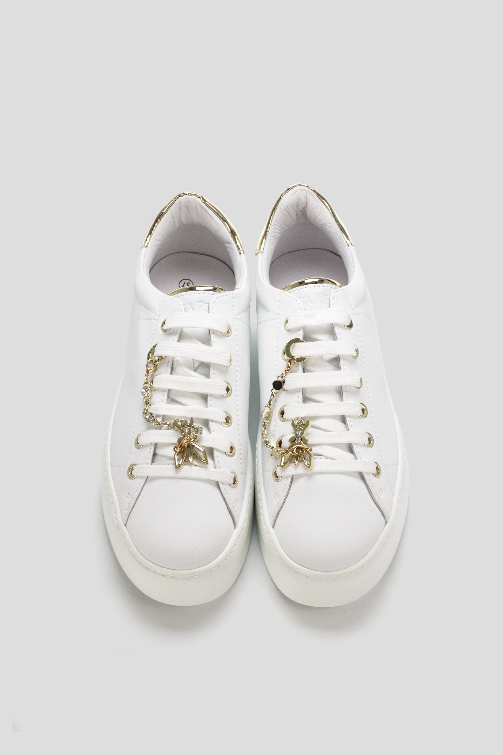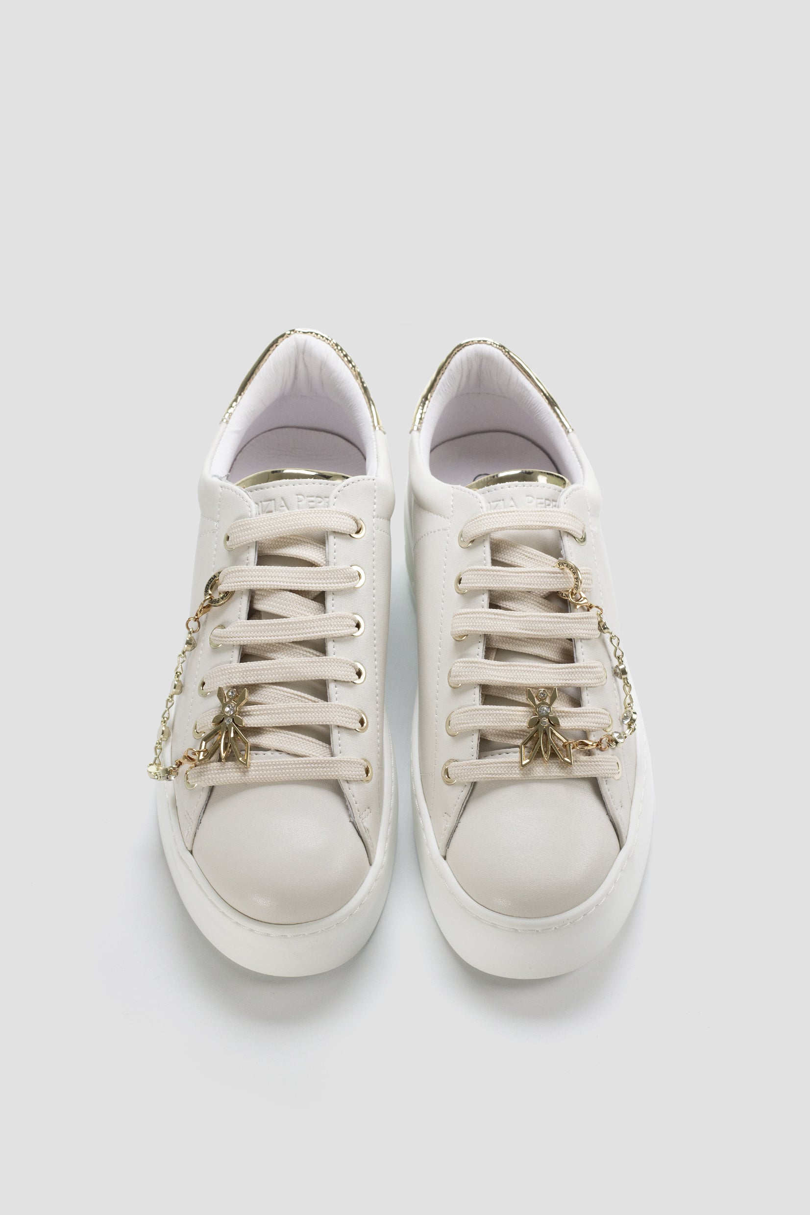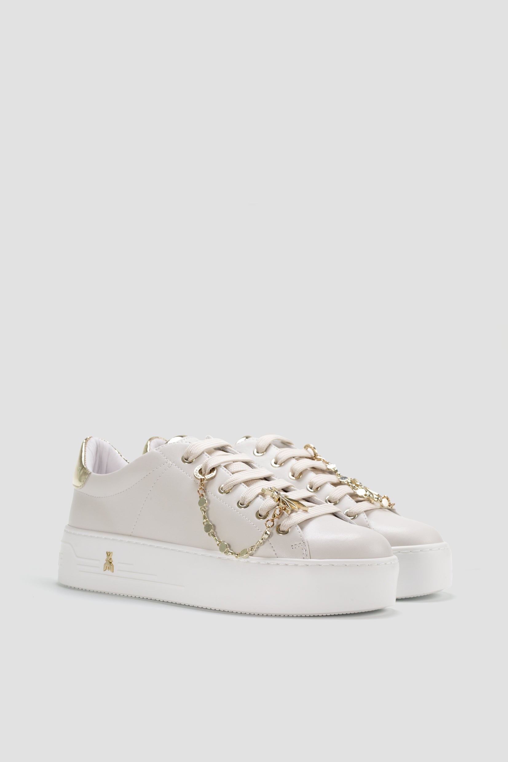 Patrizia Pepe ženske patike predstavljaju sofisticiranu kombinaciju elegancije i urbane dinamike. Savršen spoj stila i komfora, ove patike donose bezvremenski dizajn sa savremenim detaljima. Izrađene su od visokokvalitetne kože koja im pruža luksuzan izgled, dok su metalni detalji u zlatnoj boji, poput lančića i logotipa na peti, dodaju sofisticiranost.