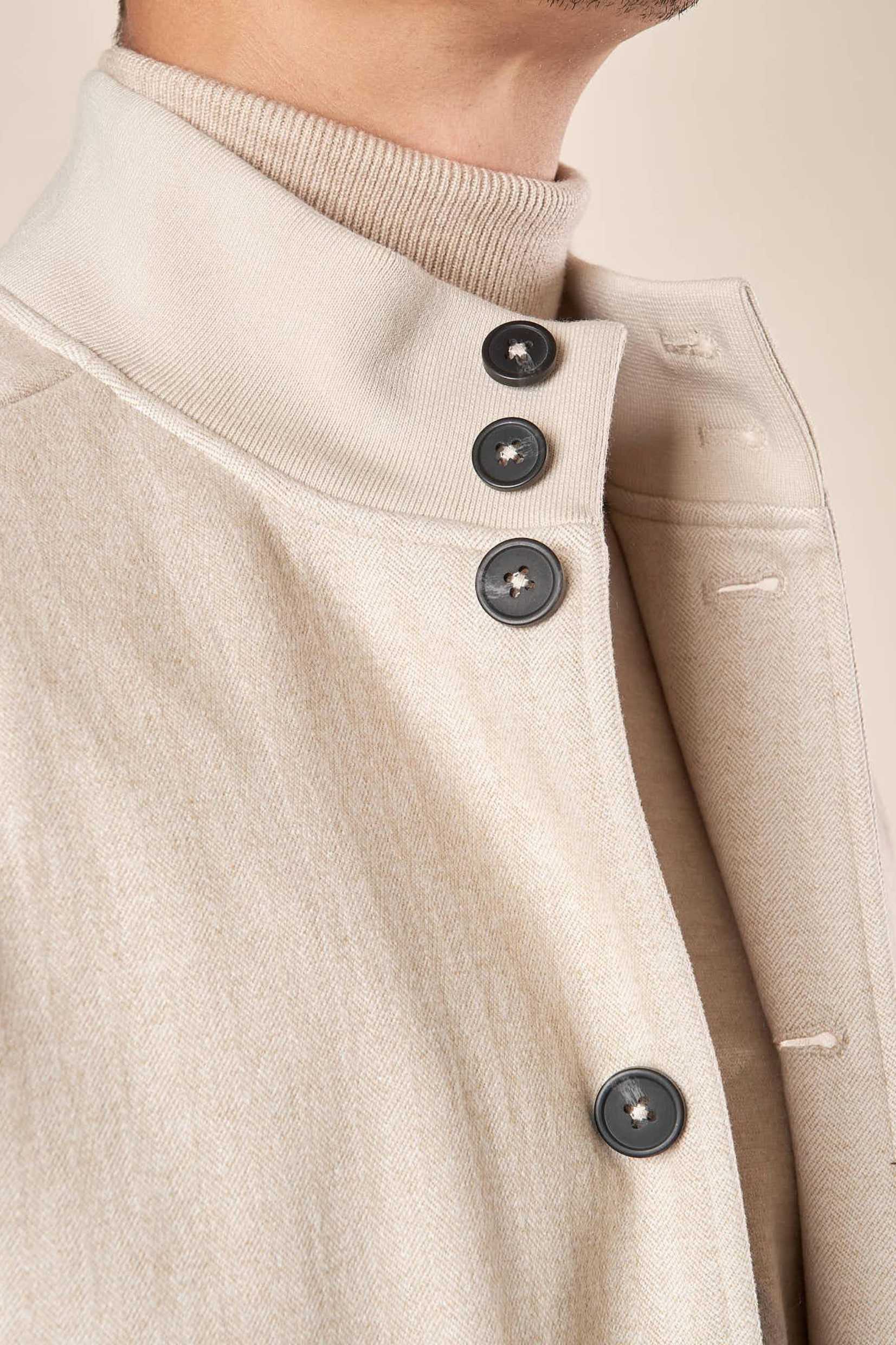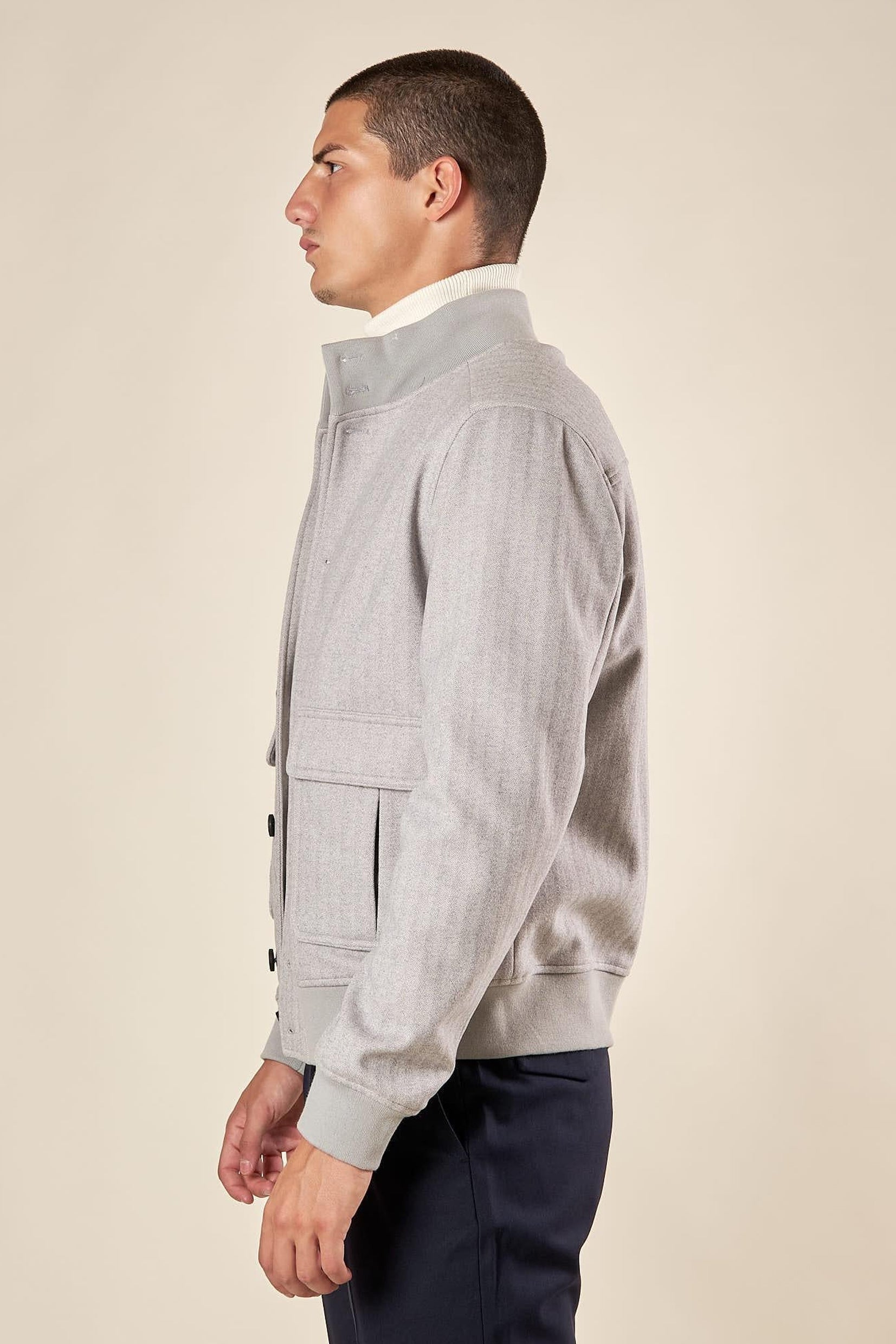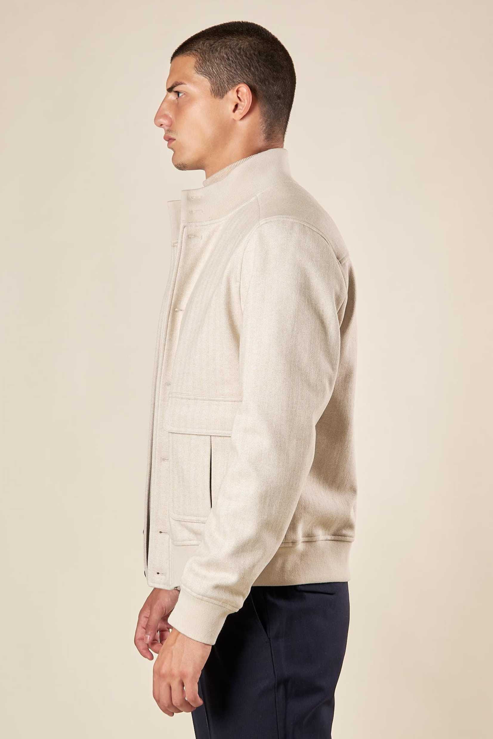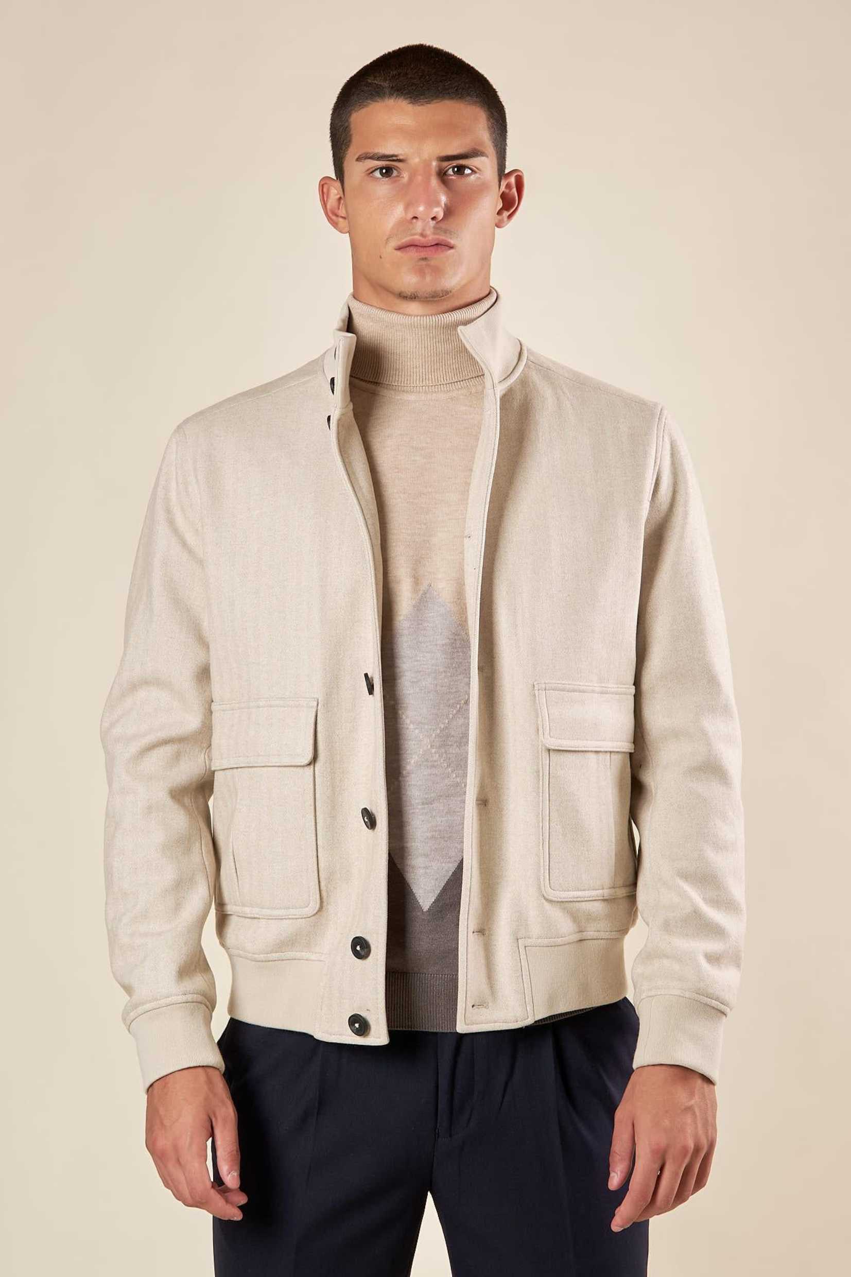 Rafinirana i savremena, muška bomber jakna predstavlja savršen izbor za one koji traže univerzalan komad sa sofisticiranim i funkcionalnim dizajnom. Izrađena od tkanine u herringbone (riblja kost) dezenu, ova jakna odiše elegancijom i teksturom koja je čini idealnom za jesenje i prolećne dane.