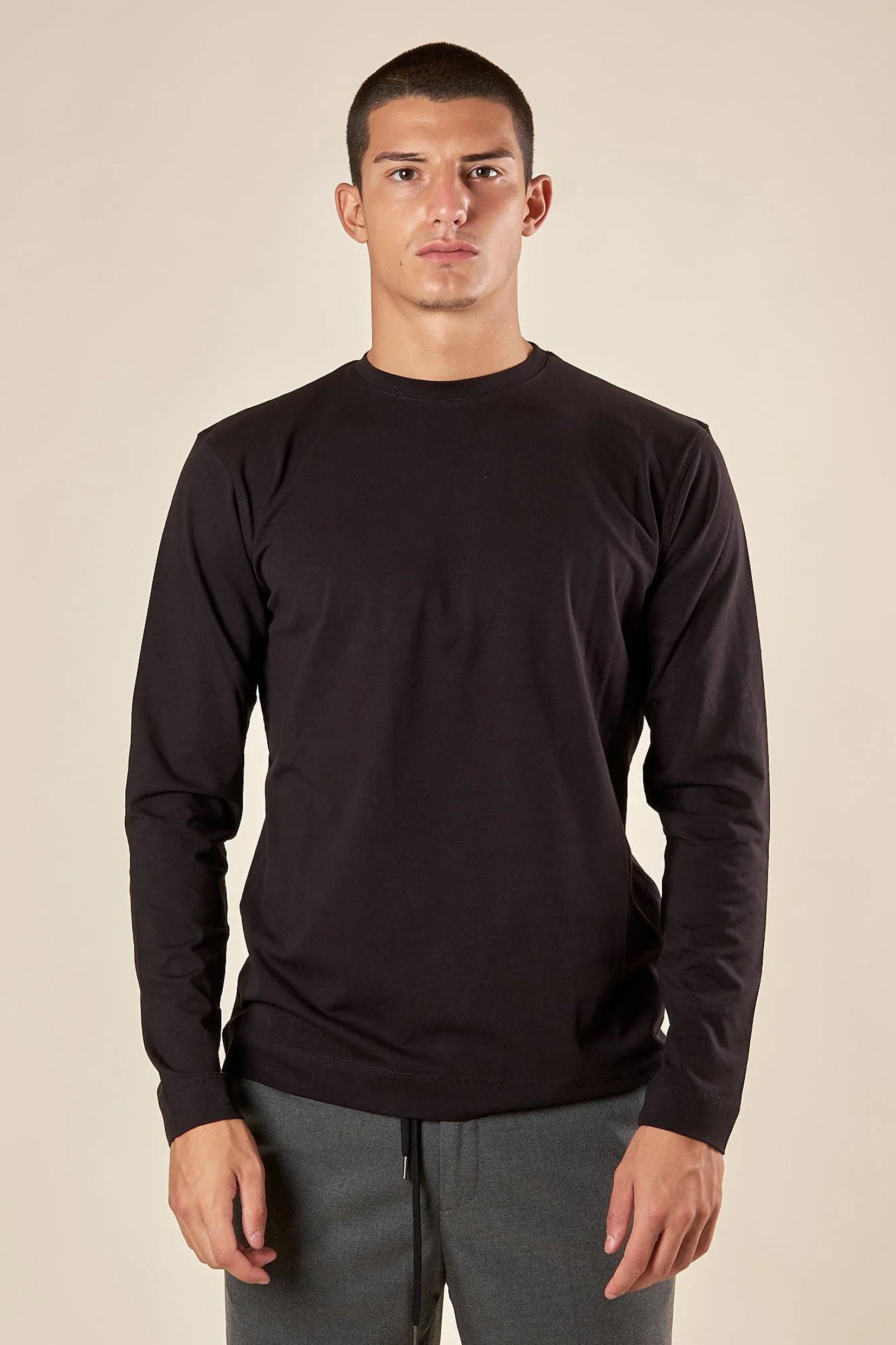 Osnovni, svestrani i dizajnirani za udobnost – ovaj muški duks sa dugim rukavima i okruglim izrezom izrađen je od toplog pamučnog materijala, idealnog za hladnije sezone. Prirodna, prozračna tkanina prijatna je na koži i obezbeđuje toplinu bez osećaja težine. Klasičan okrugli izrez daje čist i moderan izgled, dok regularan kroj omogućava slobodu pokreta i uravnoteženu siluetu. Savršen je za nošenje samostalno ili kao osnovni sloj ispod dukseva, jakni ili džempera.