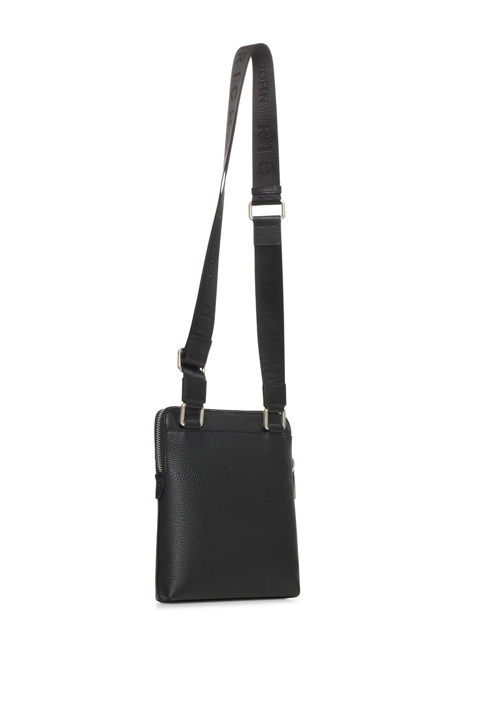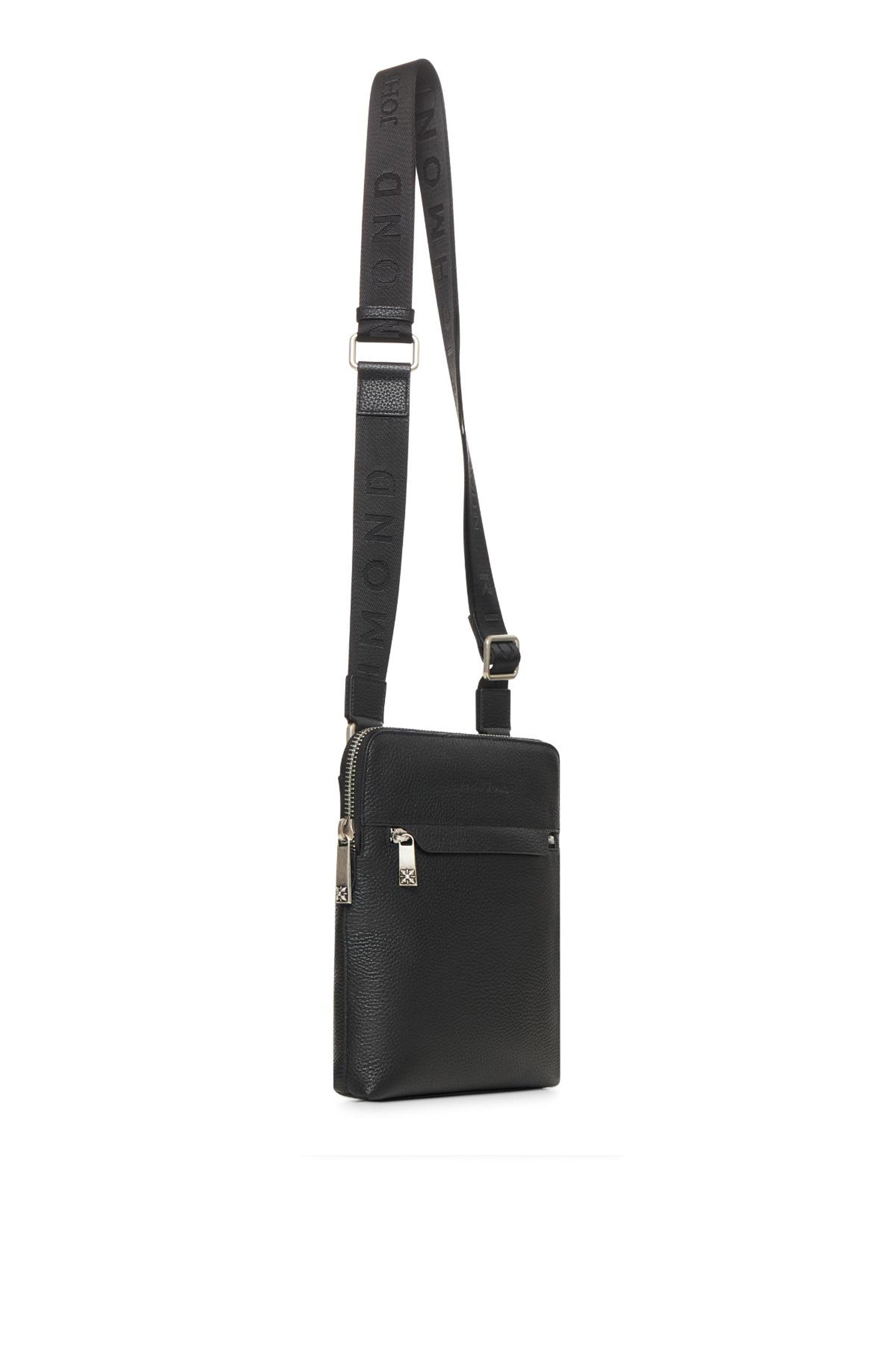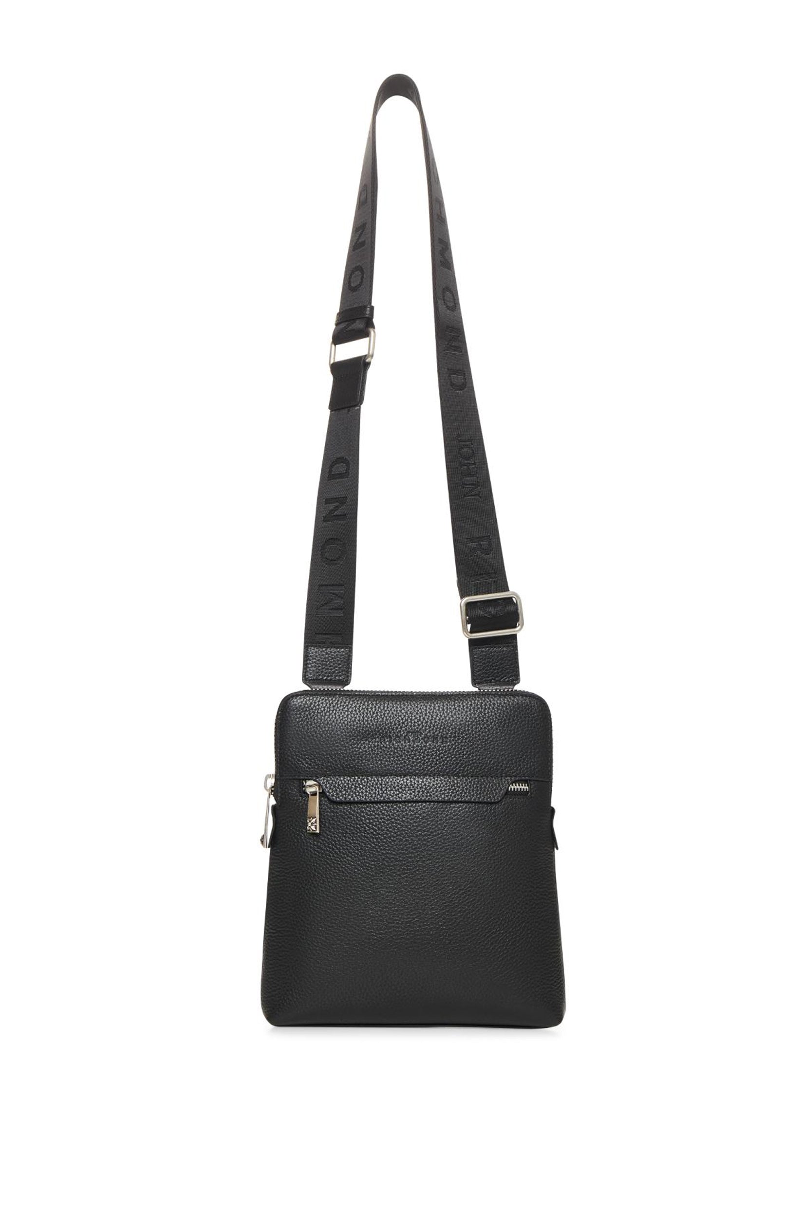 Elegancija i praktičnost u jednom – John Richmond muška torbica izrađena je od visokokvalitetne prirodne kože sa prepoznatljivom teksturom. Minimalistički dizajn u crnoj boji upotpunjen je diskretnim logoom brenda na prednjoj strani, što torbici daje sofisticiran i luksuzan izgled.
