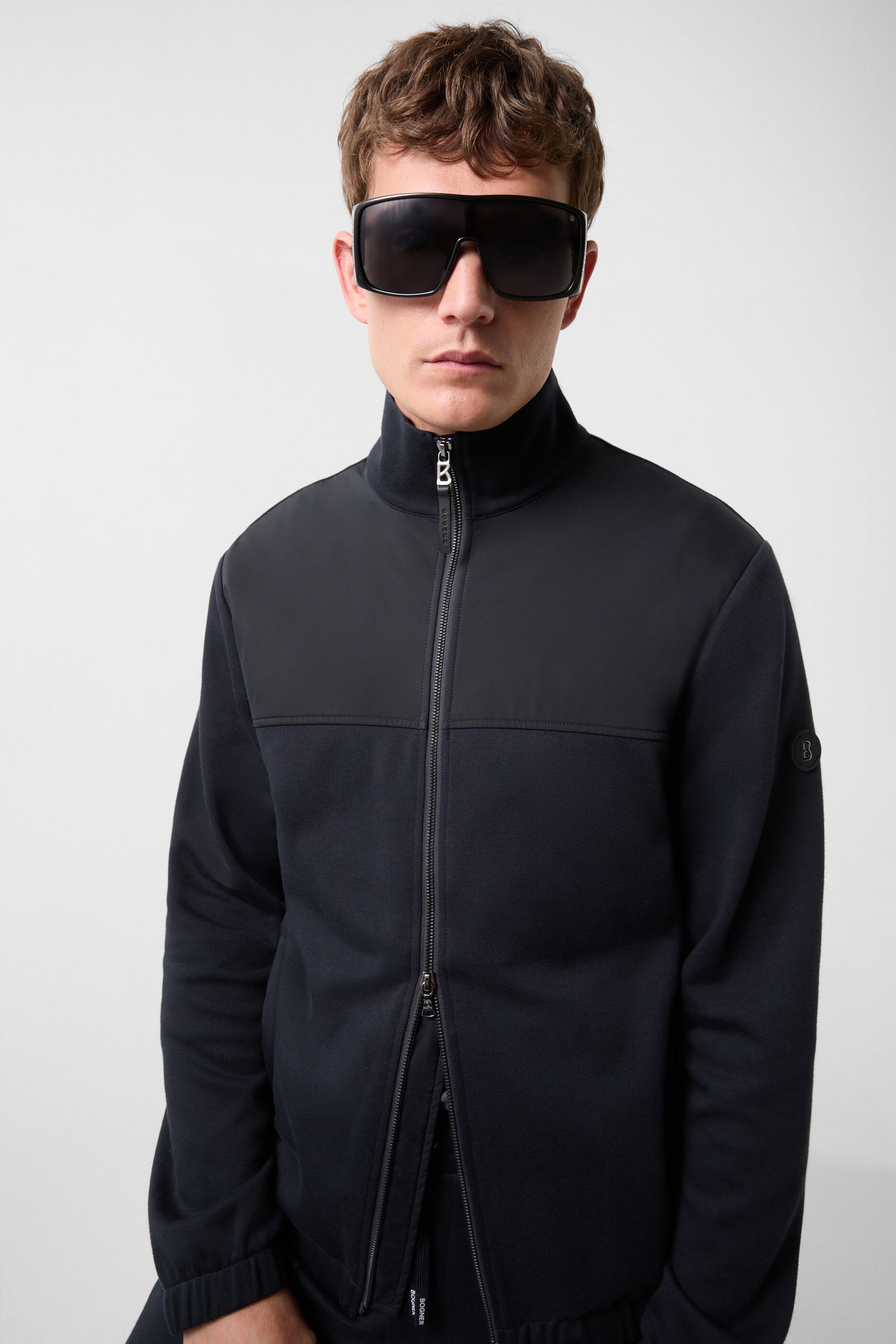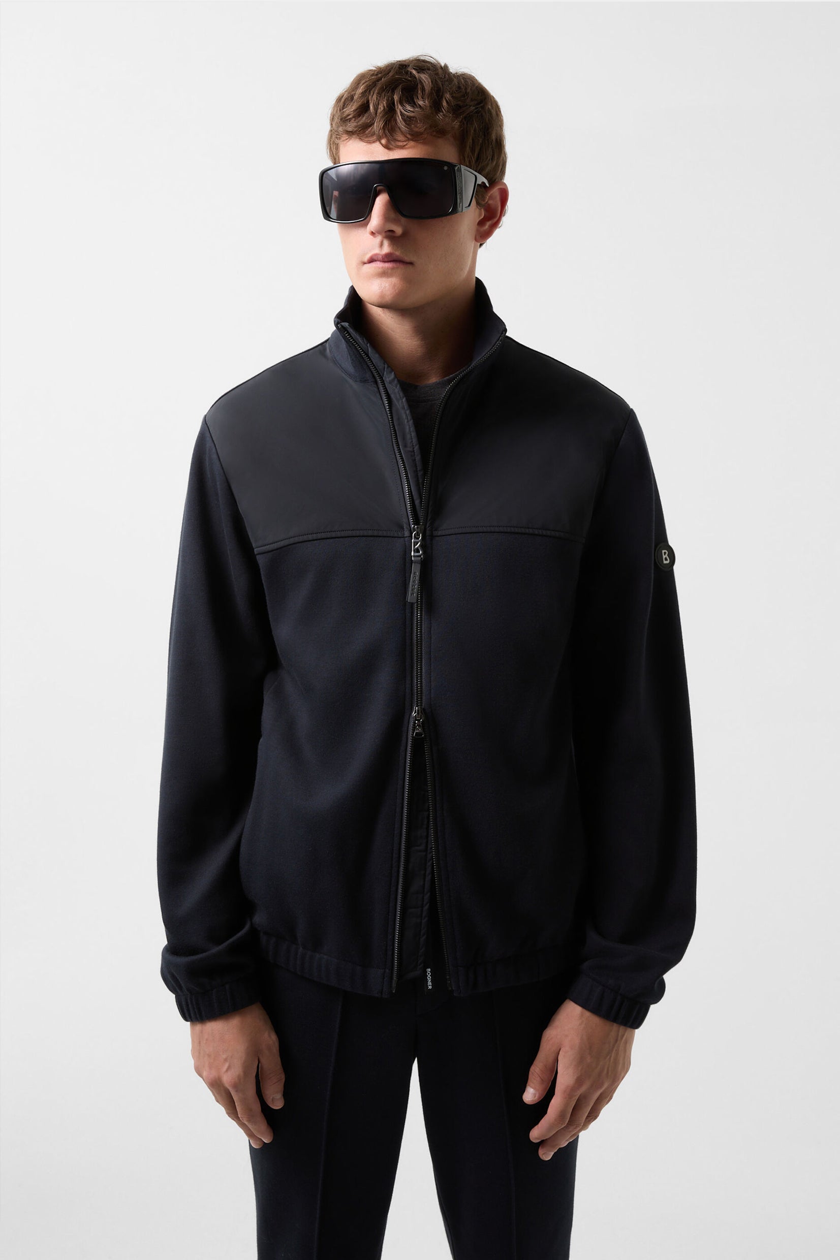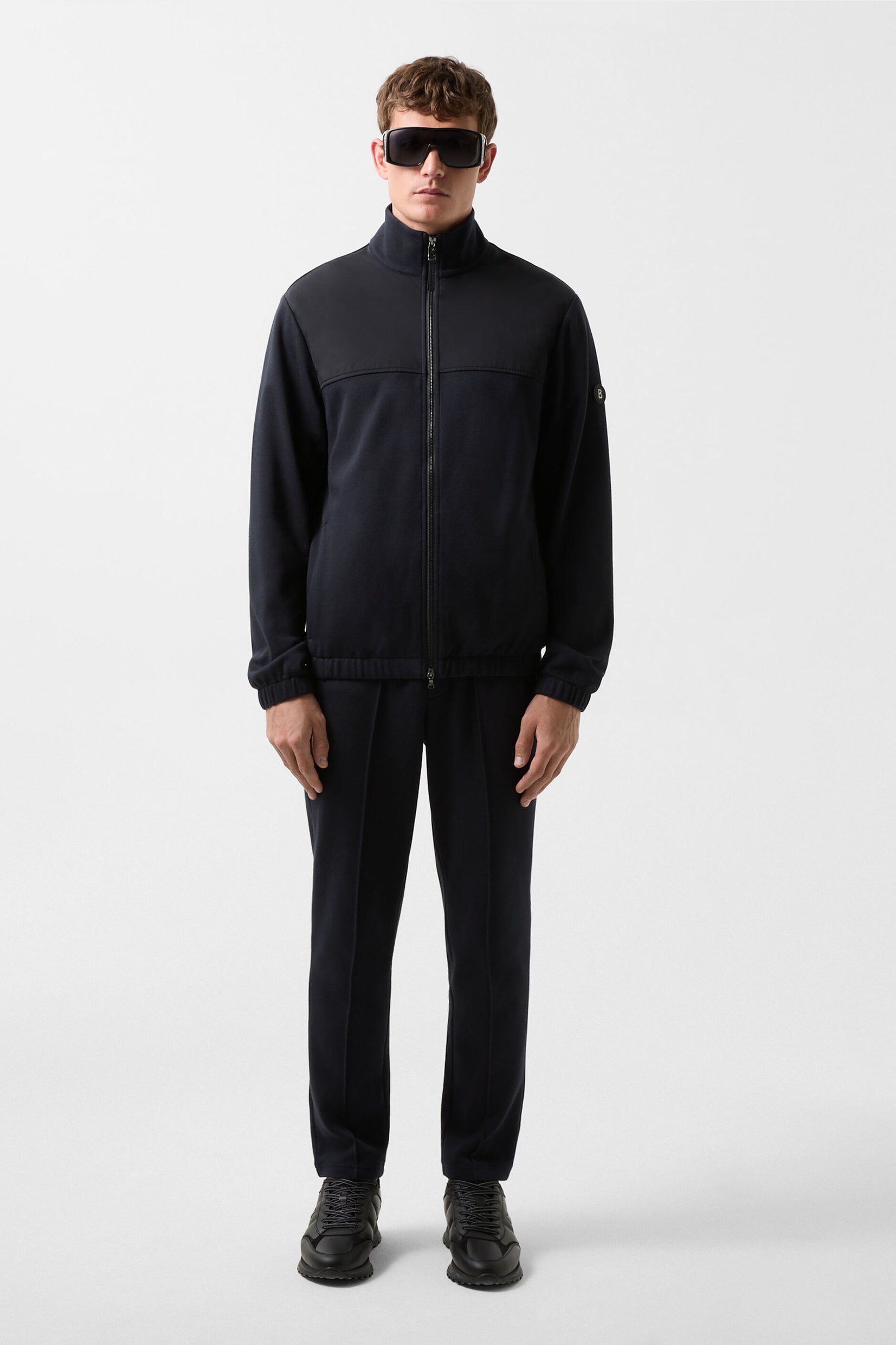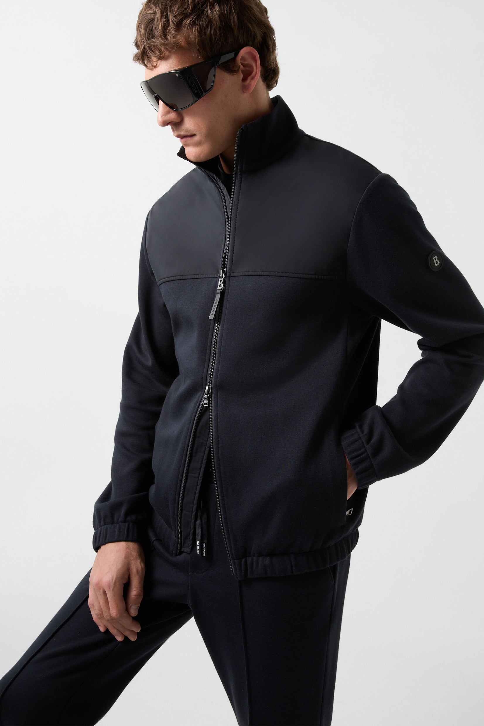 Sidney dukserica-jakna napravljena je od blago teksturiranog Oxford pamuka sa najlon patchwork detaljima na prednjem delu, što čini snažan utisak. Izgleda elegantno u kompletu sa Skye trenerkama. ‘B’ logotip sa kožnom trakom na dvostrukom patentnom zatvaraču i nevidljivi džepovi u šavovima dodaju stylish akcenat, dok elastični donji rubovi upotpunjuju urbani izgled ovog komada.