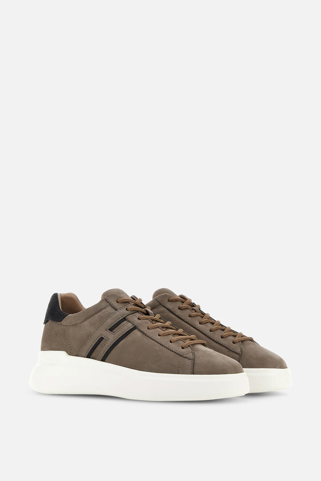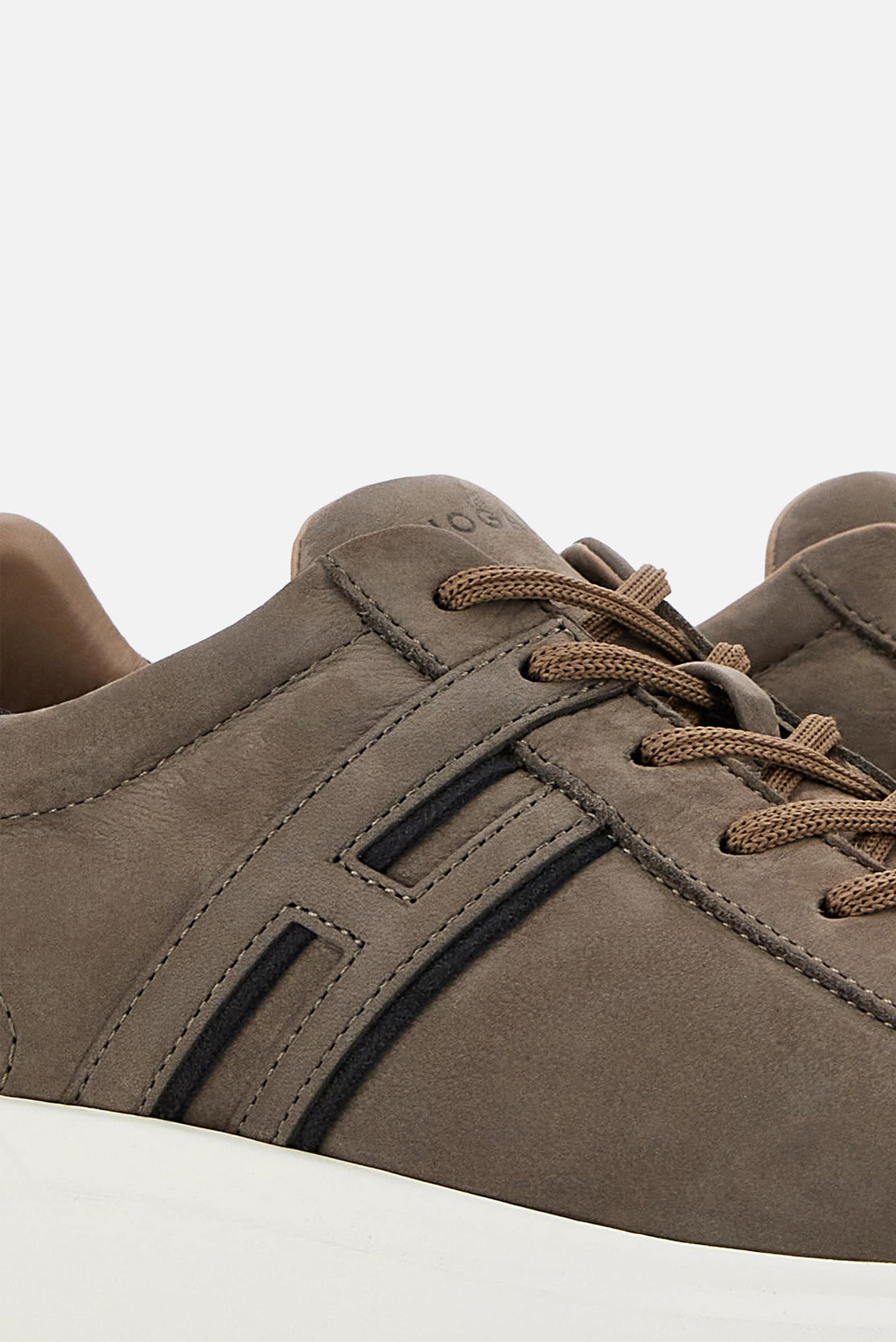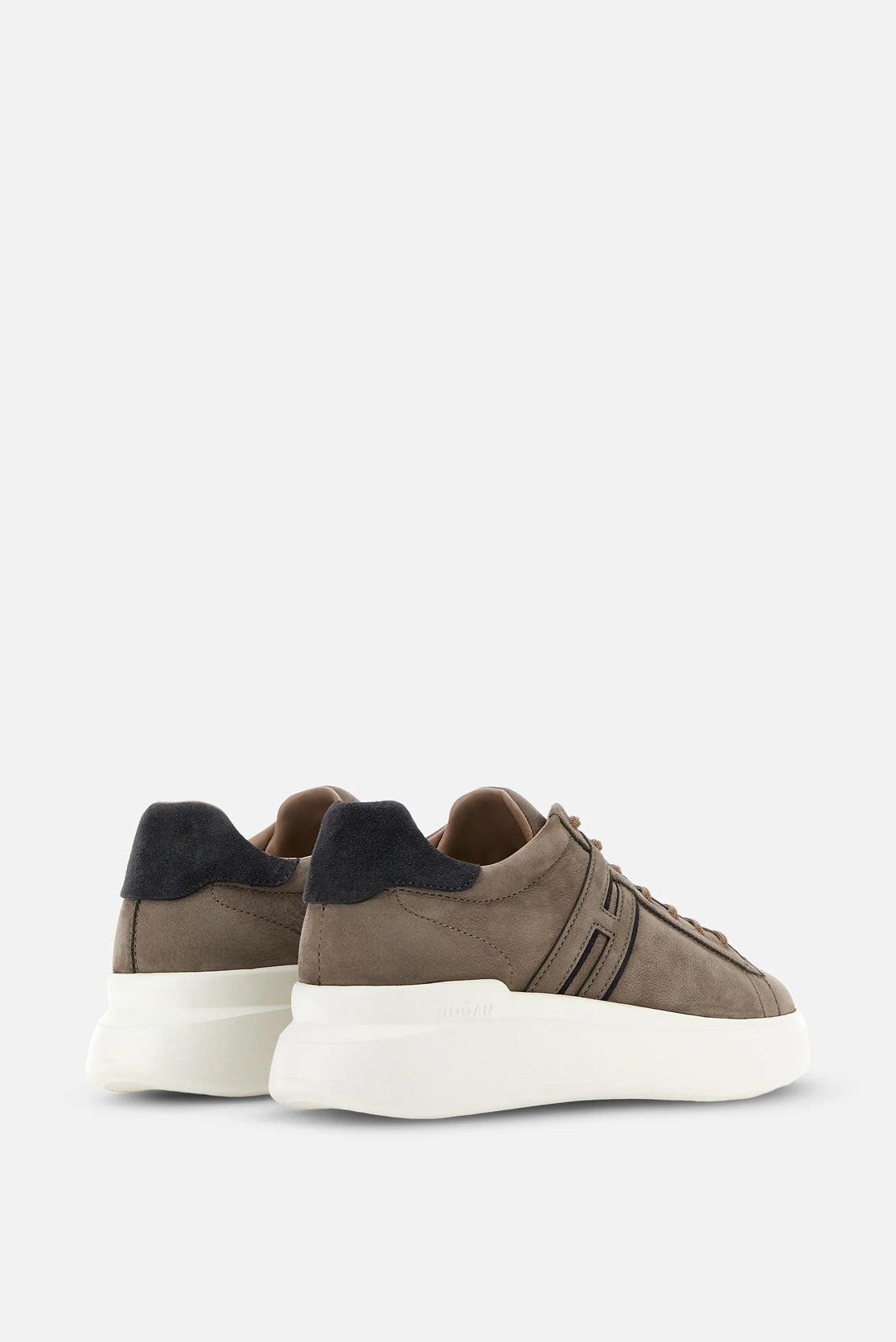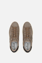 - Gornji deo: Izrađen od ante kože i tkanine, gornji deo evocira prepoznatljive detalje brenda Hogan. Loop na zadnjem delu olakšava obuvanje i dodaje tehnički element dizajnu.