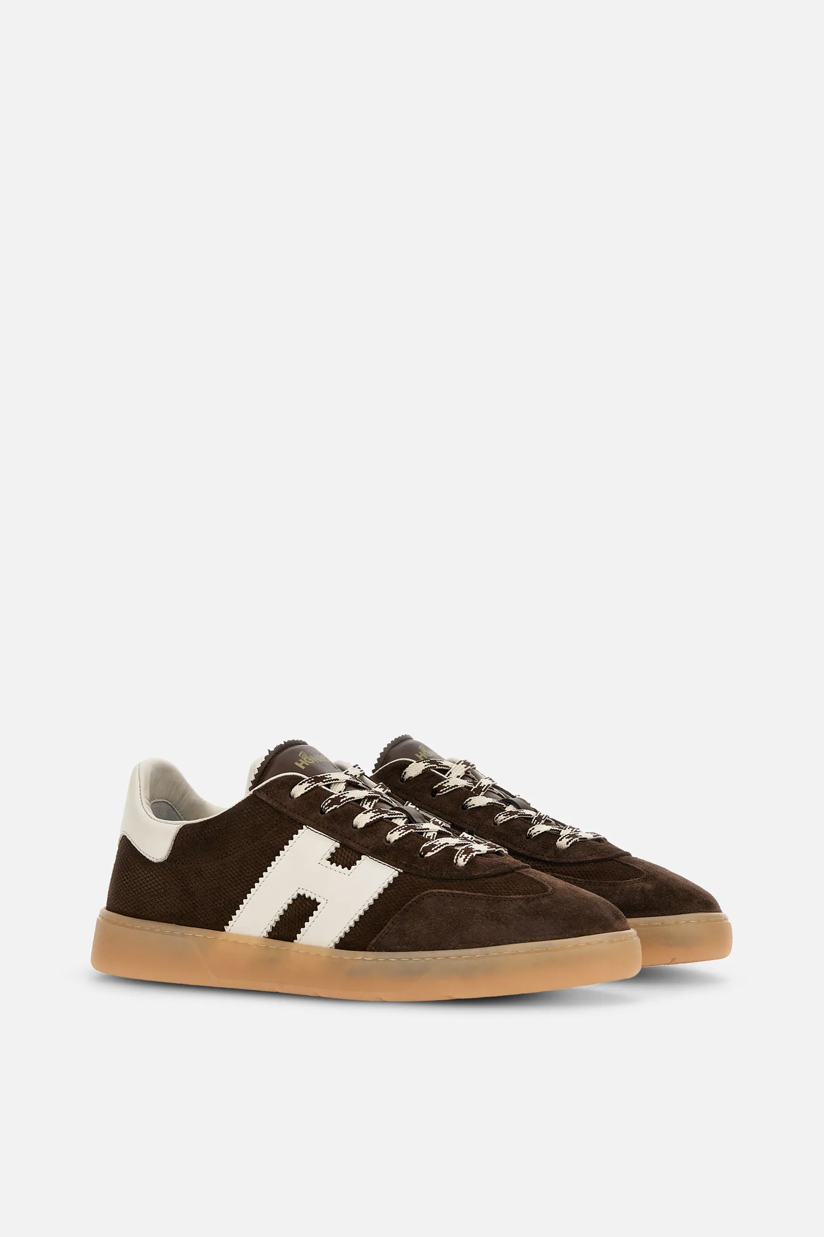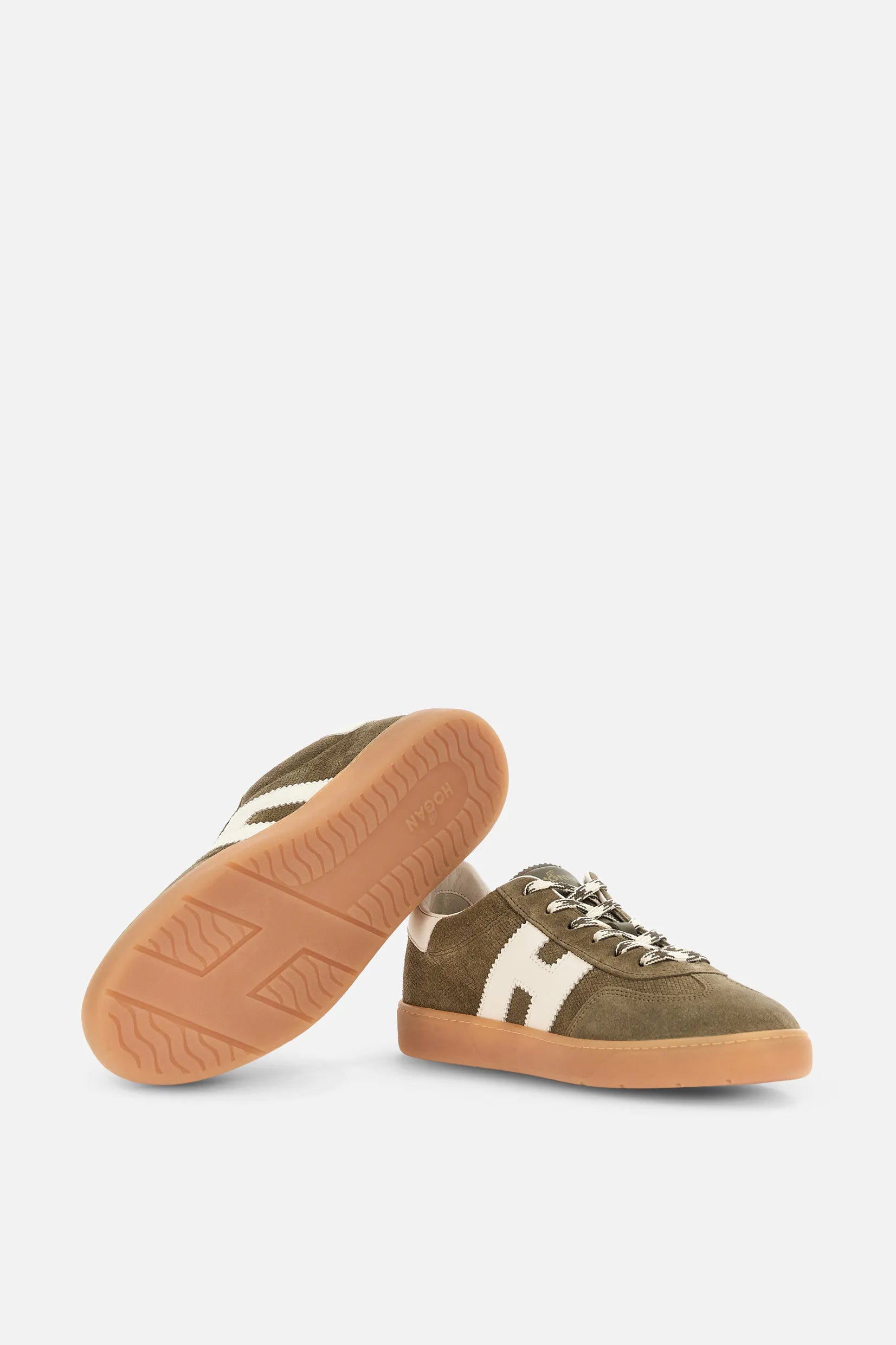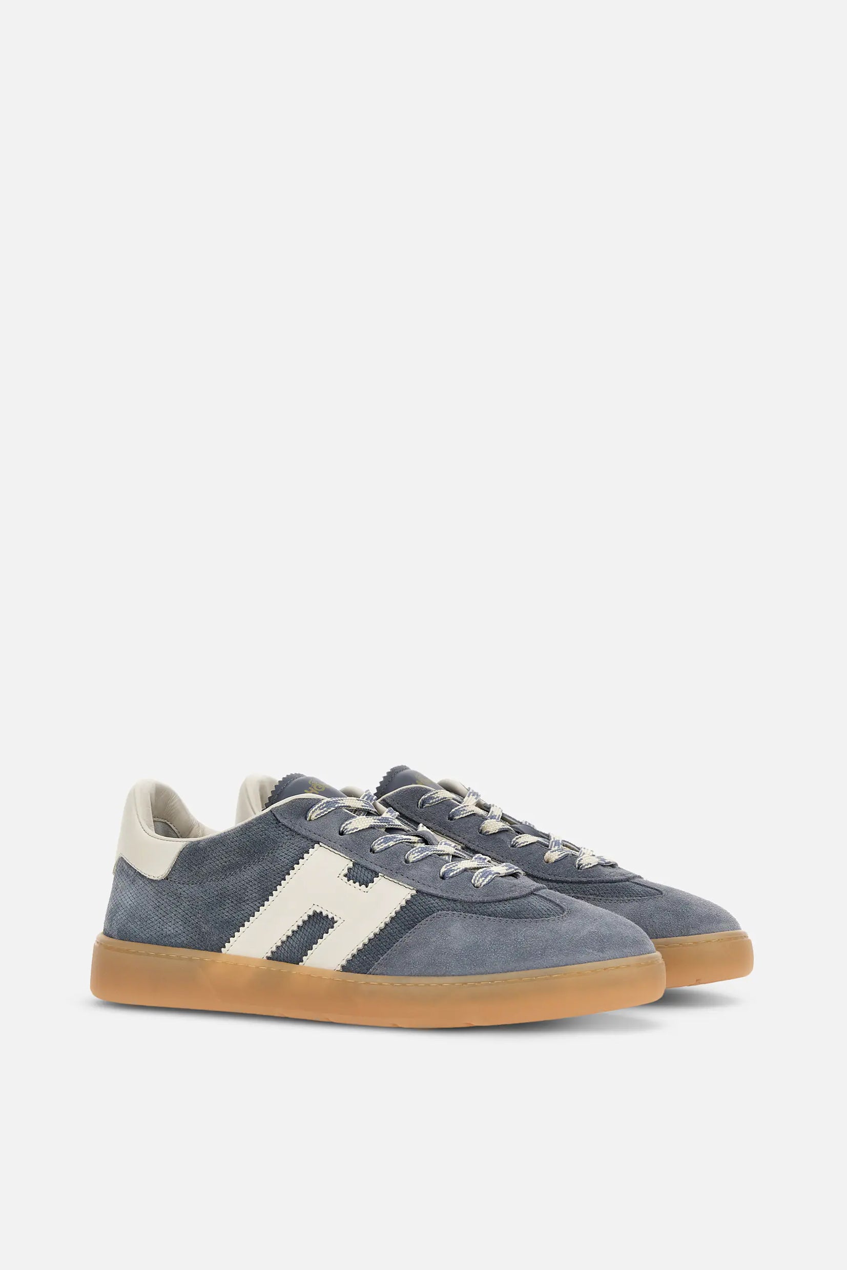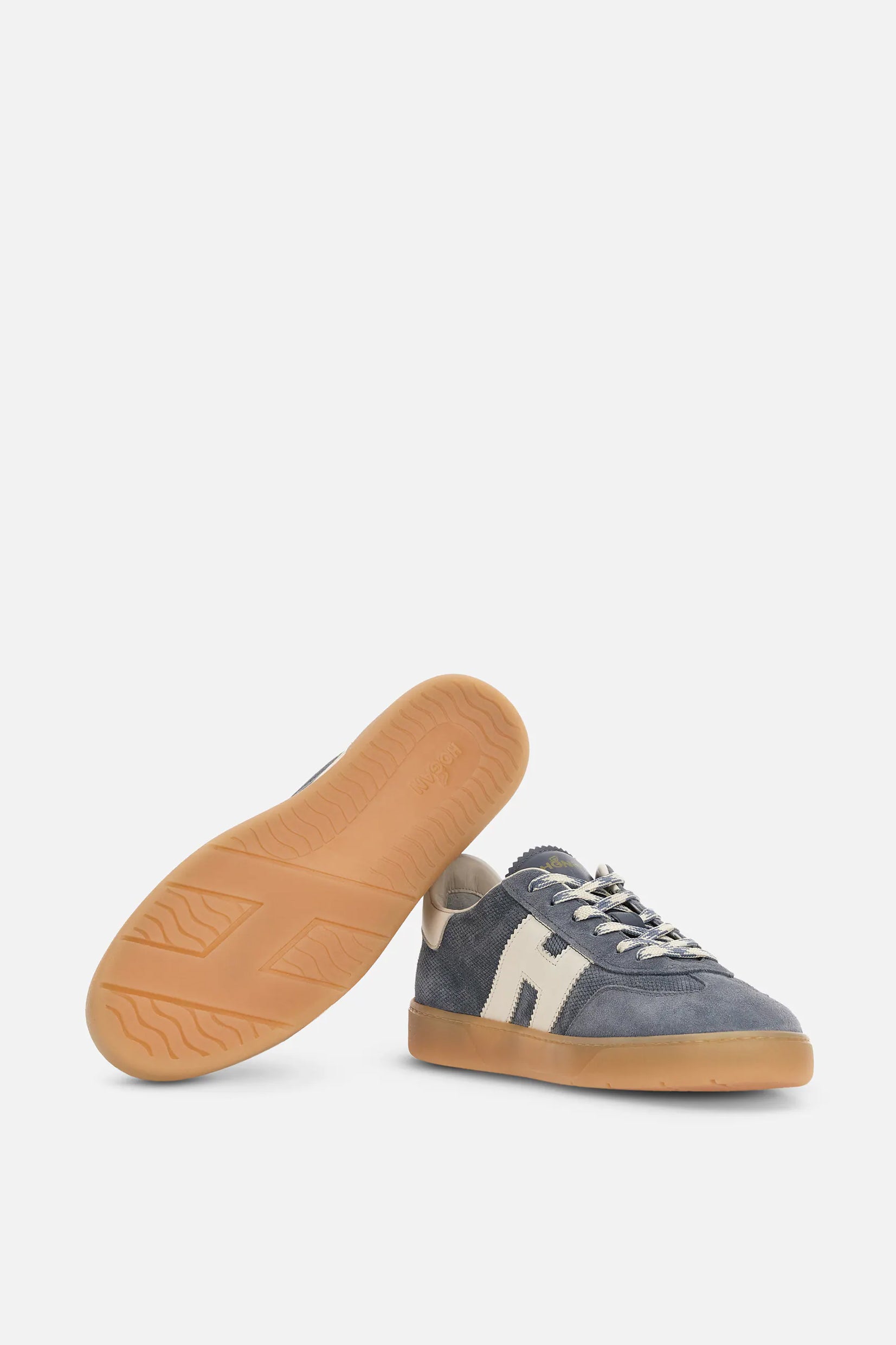 Model Hogan Cool spaja brušenu kožu, prepoznatljivo nazubljeno „H“ obeležje i gumeni đon u amber nijansi za autentičan urban izgled.