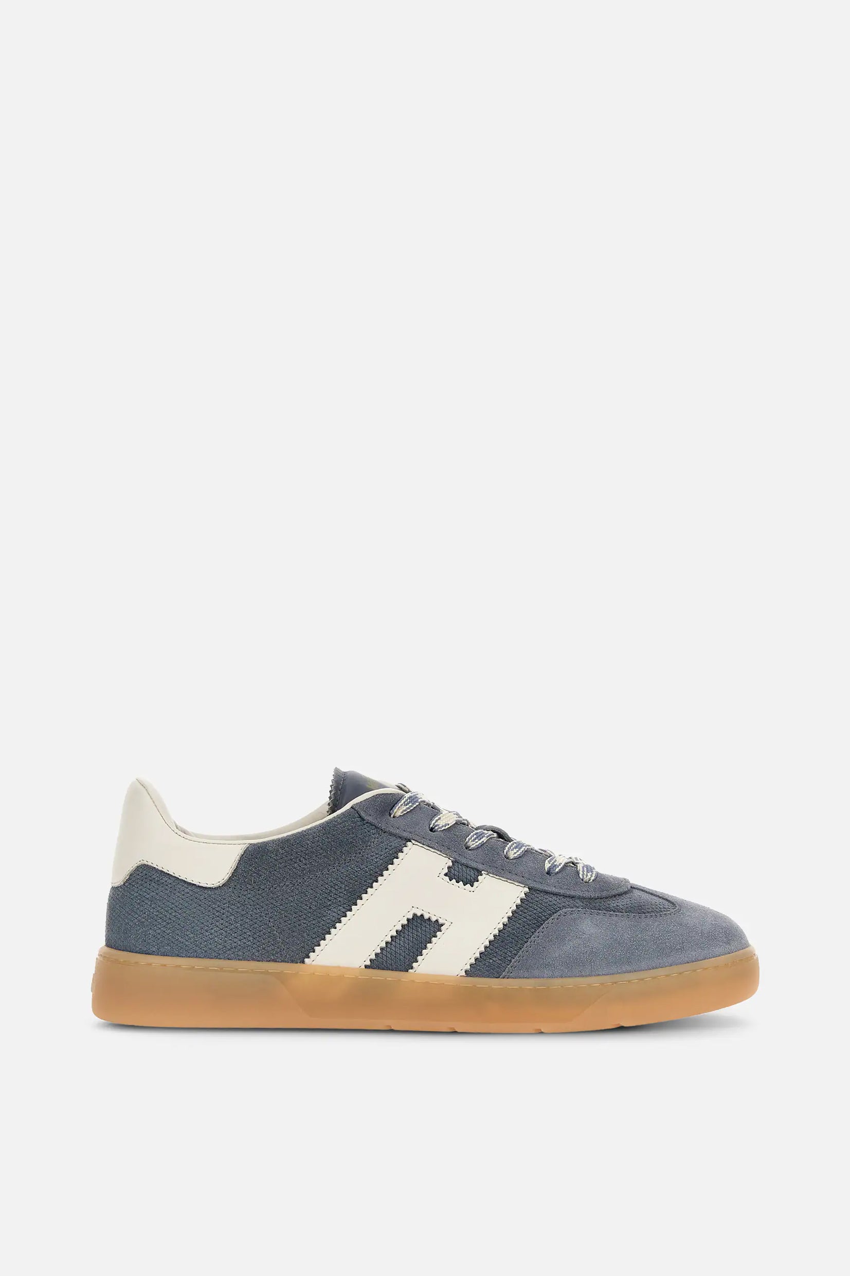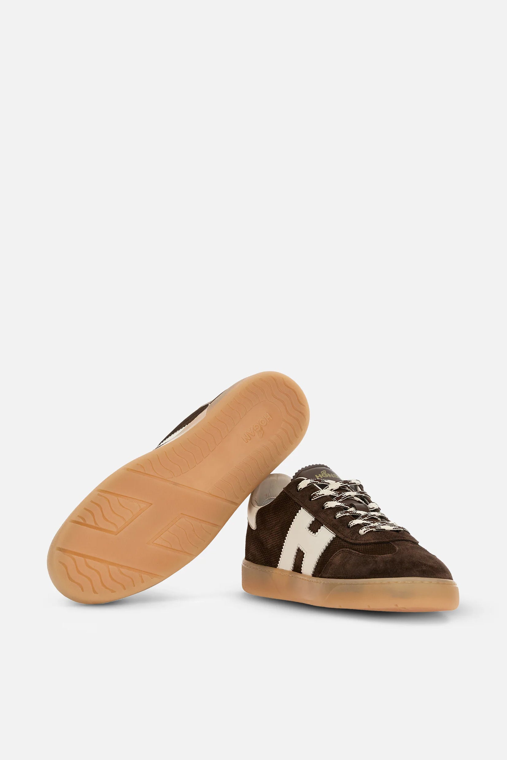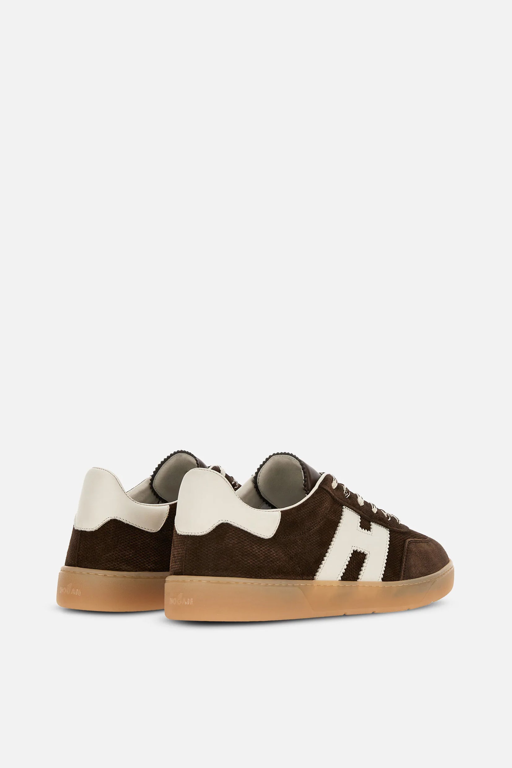 Model Hogan Cool spaja brušenu kožu, prepoznatljivo nazubljeno „H“ obeležje i gumeni đon u amber nijansi za autentičan urban izgled.