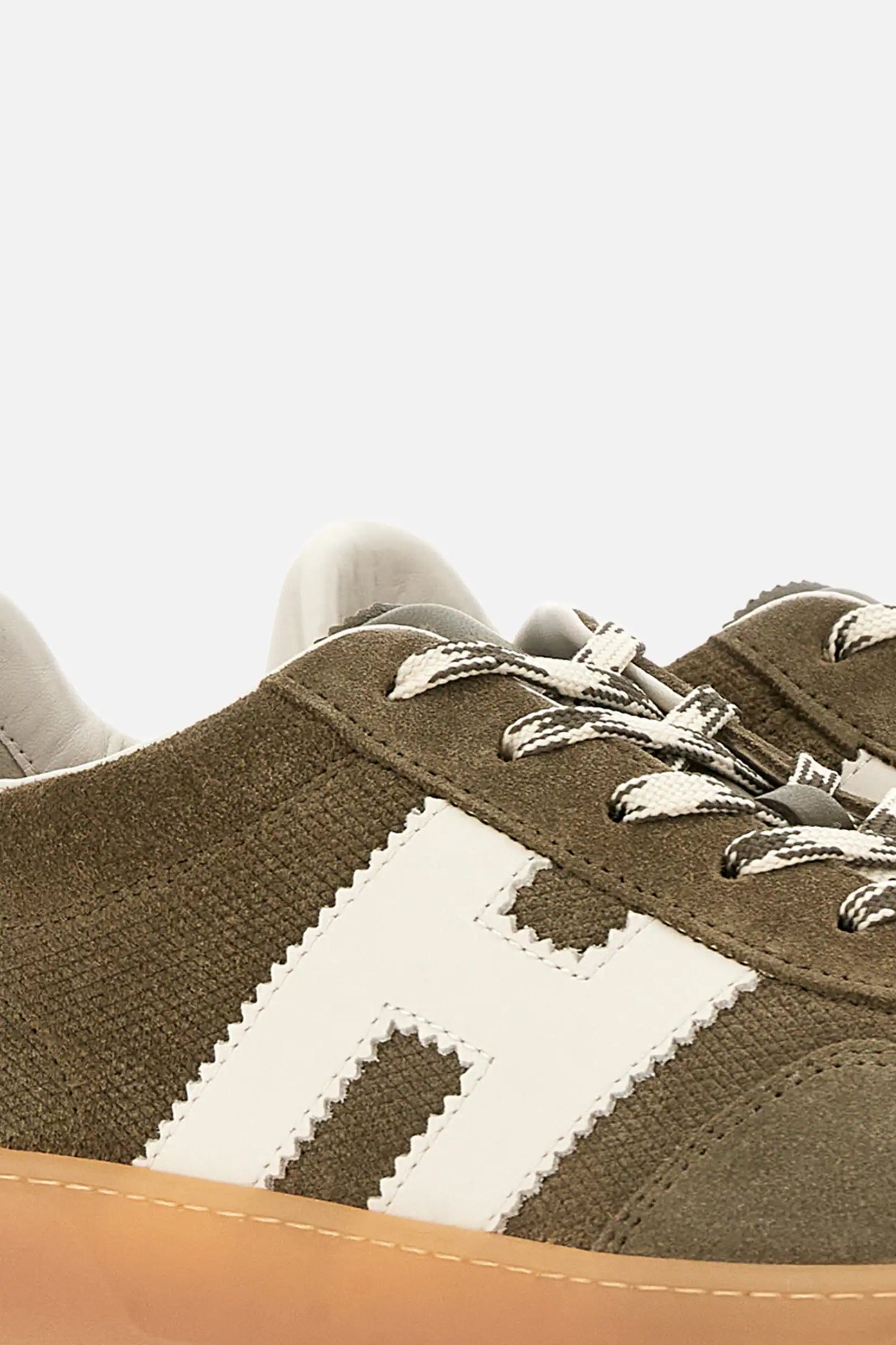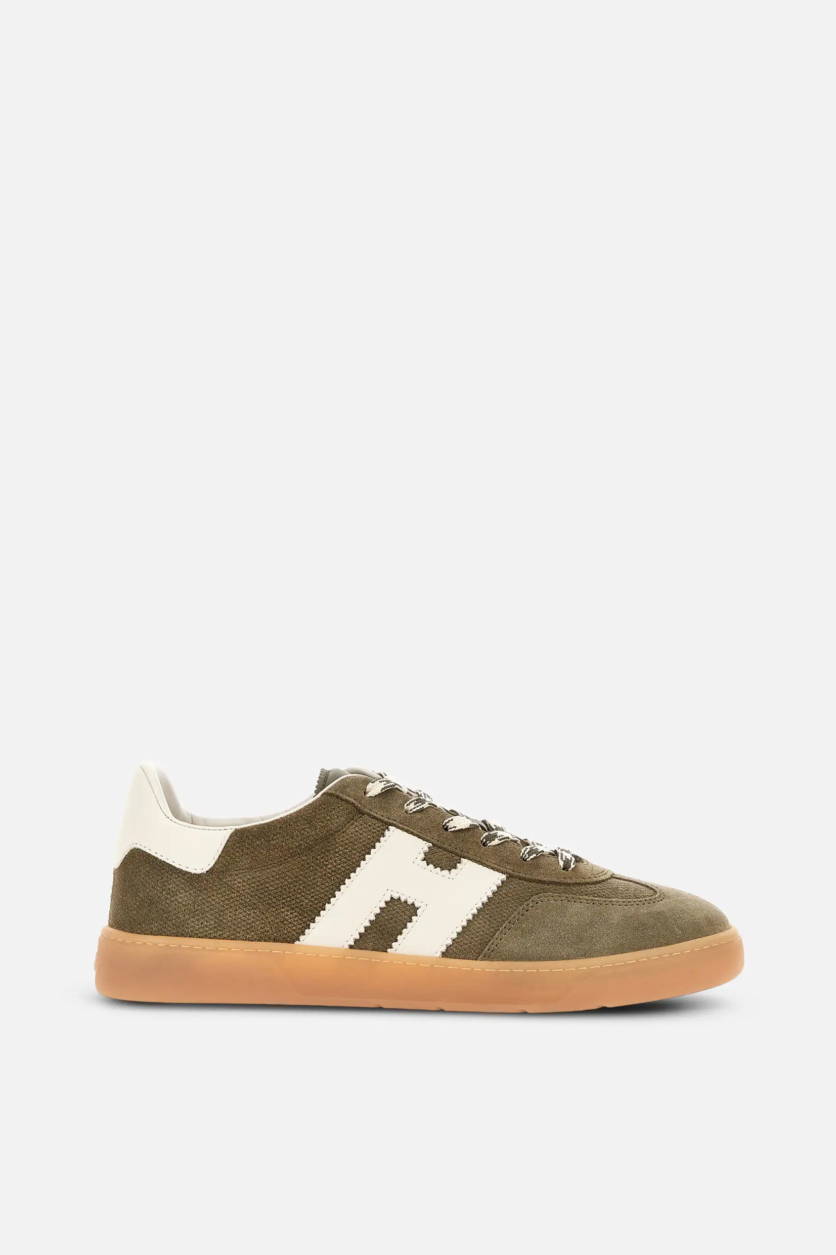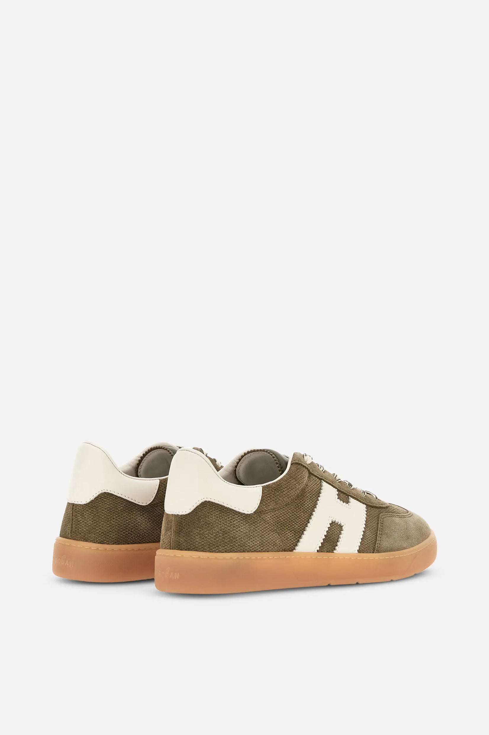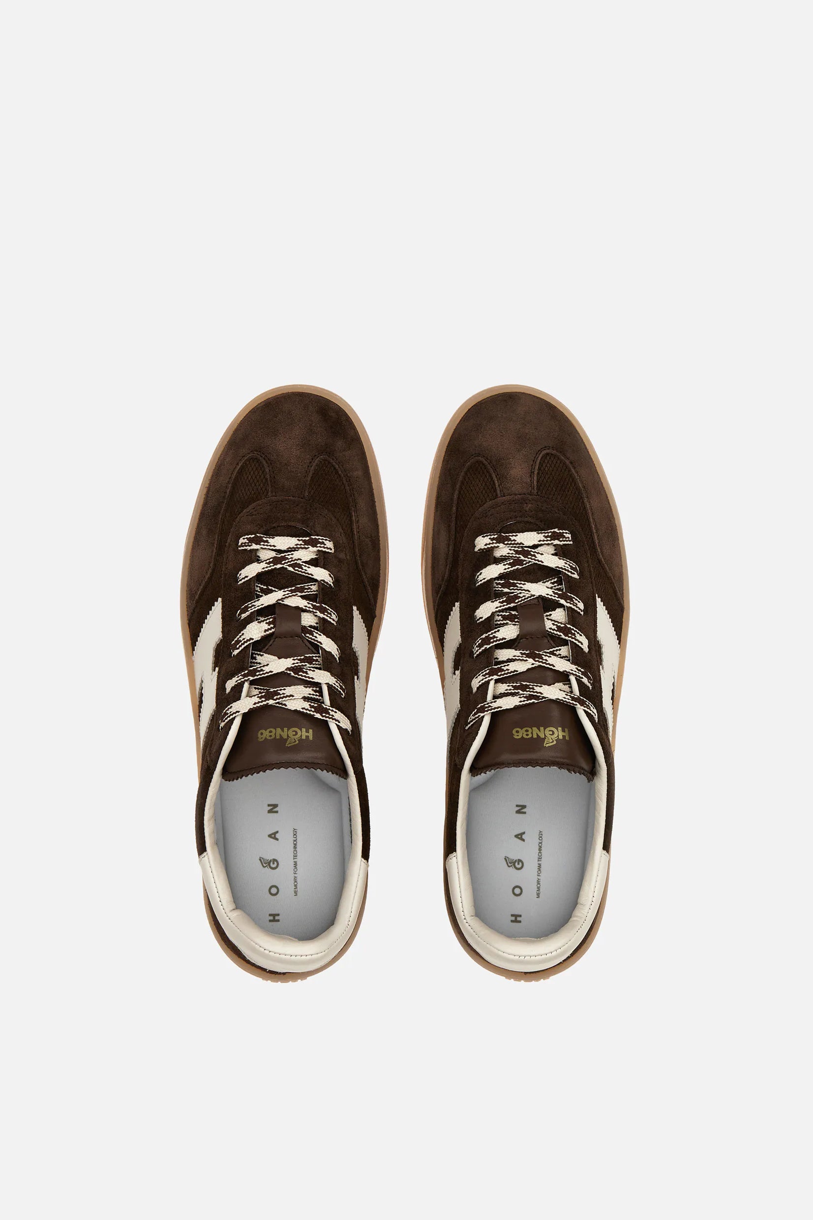 Model Hogan Cool spaja brušenu kožu, prepoznatljivo nazubljeno „H“ obeležje i gumeni đon u amber nijansi za autentičan urban izgled.