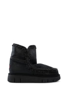 MOU čizmice se pojavljuju sa inovativnim logo dizajnom. Poznati asortiman Mou eskimo nudi sofisticirane boje, prikriveni dizajn i zanatsku izradu. One su pravi izbor za zimsku kombinaciju topline, udobnosti i atraktivnosti. Rađene su od mekane i savršeno tople ovčije kože sa dvostrukim licem. Zatim, ručno heklanih vunenih šavova koji jačaju efekat topline kojom zrače ove lepotice. Udobnost Vam garantuje gumeni spoljni EVA đon.