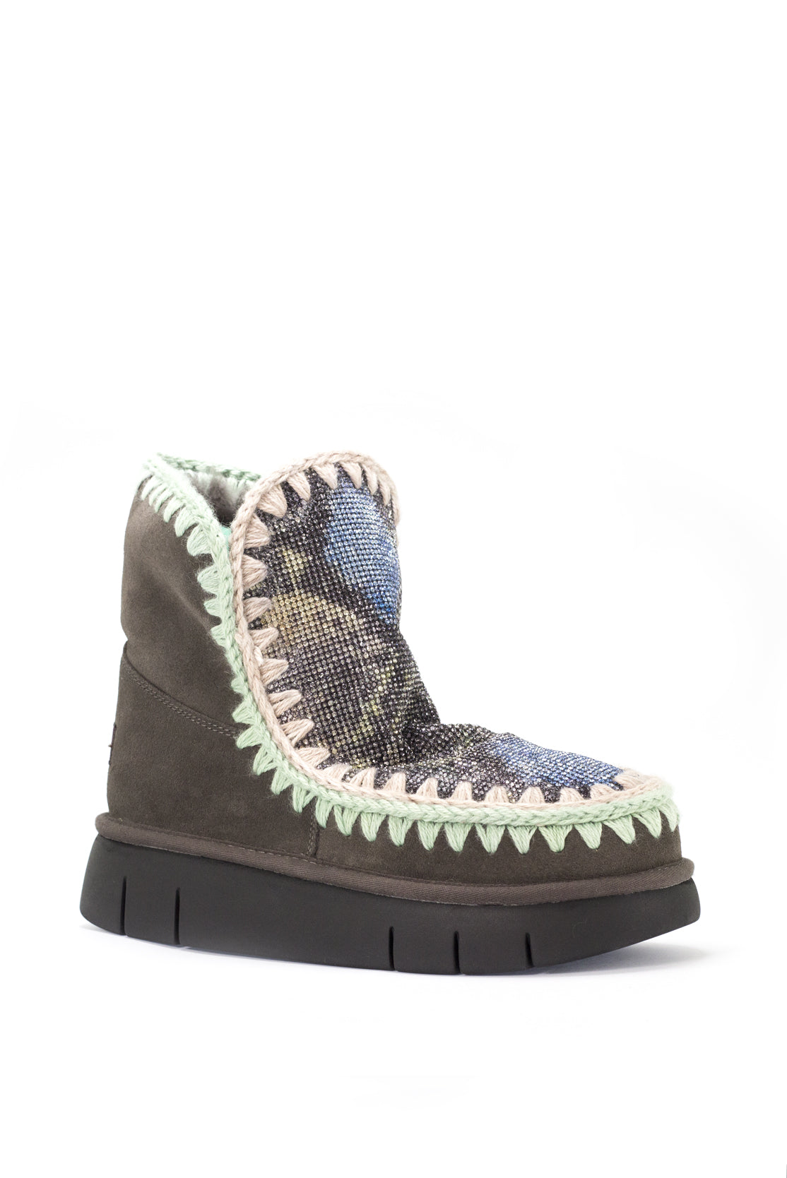 MOU čizmice se pojavljuju sa inovativnim logo dizajnom. Poznati asortiman Mou eskimo nudi sofisticirane boje, prikriveni dizajn i zanatsku izradu. One su pravi izbor za zimsku kombinaciju topline, udobnosti i atraktivnosti. Rađene su od mekane i savršeno tople ovčije kože sa dvostrukim licem. Zatim, ručno heklanih vunenih šavova koji jačaju efekat topline kojom zrače ove lepotice. Udobnost Vam garantuje gumeni spoljni EVA đon.
