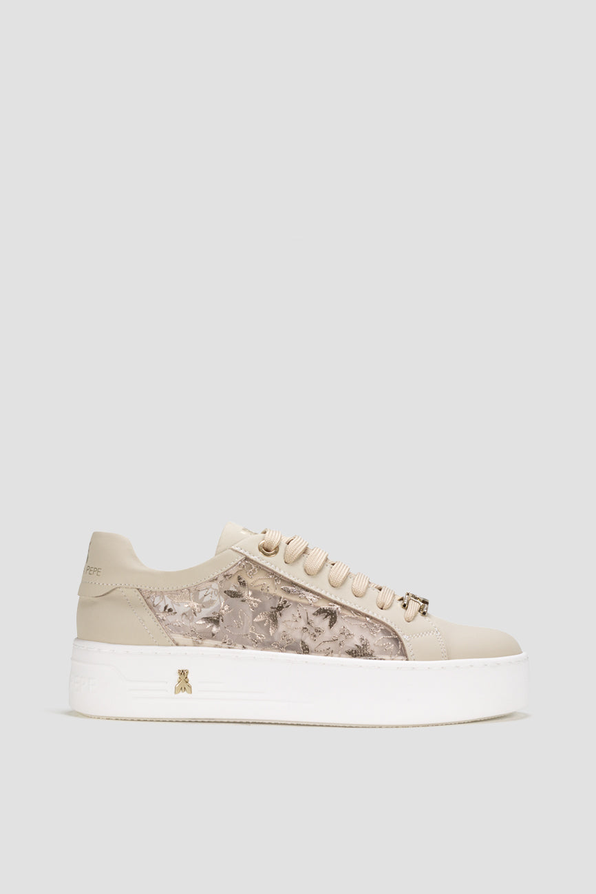 Patrizia Pepe ženske patike donose spoj urbanog stila i sofisticiranih detalja, idealne za moderne i upečatljive svakodnevne kombinacije. Gornji deo od prirodne kože dopunjen je dekorativnim mrežastim panelima sa prepoznatljivim Fly motivom, koji modelu daje jedinstven i elegantan izgled. Zlatni metalni detalji i platform gumeni đon dodatno naglašavaju luksuzan karakter modela, dok mekana unutrašnjost pruža udobnost tokom celodnevnog nošenja.