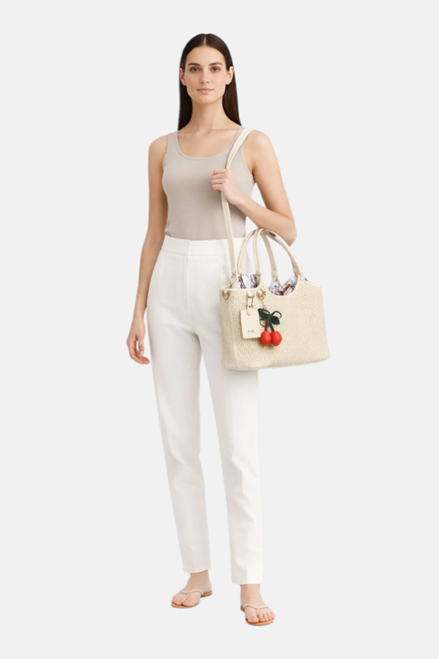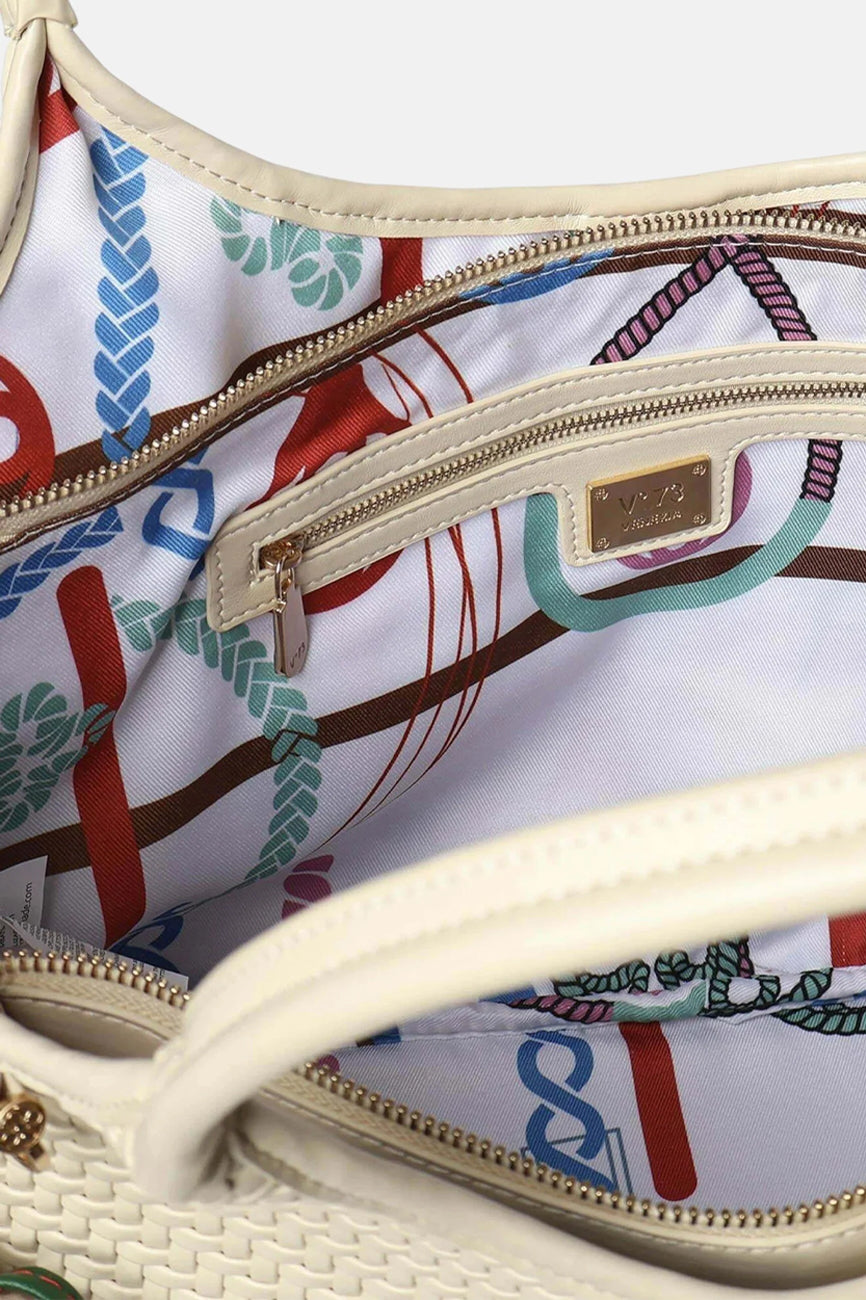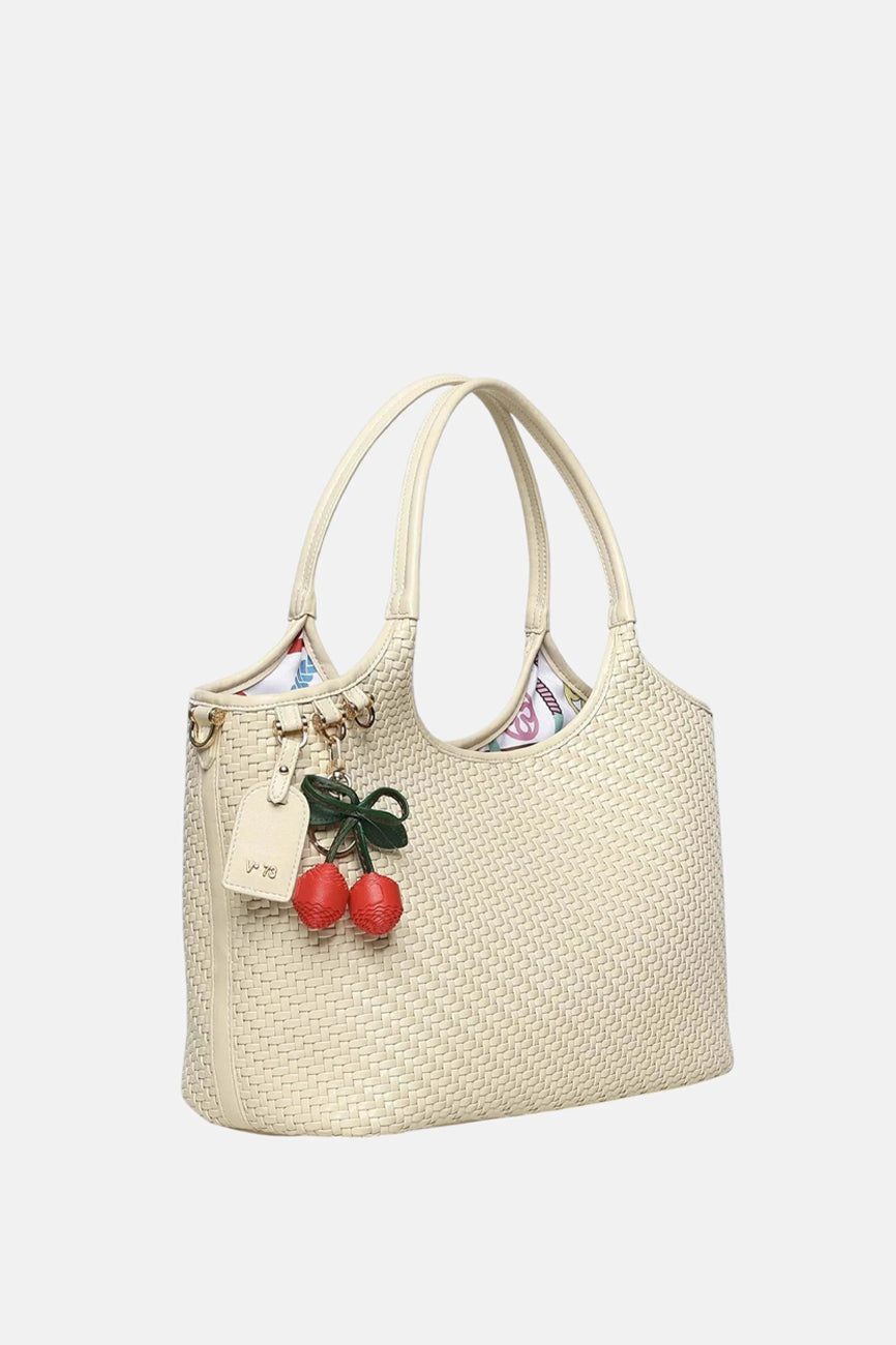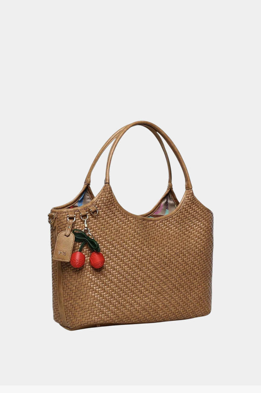V73 torba Zelda donosi sofisticiran i moderan izgled sa pletenim detaljima i upečatljivim cherry privezak detaljem. Strukturisana baguette silueta daje elegantan oblik koji se lako uklapa u svakodnevne i poslovne kombinacije, dok minimalistički dizajn sa diskretnim logo elementima pruža prepoznatljiv stil.