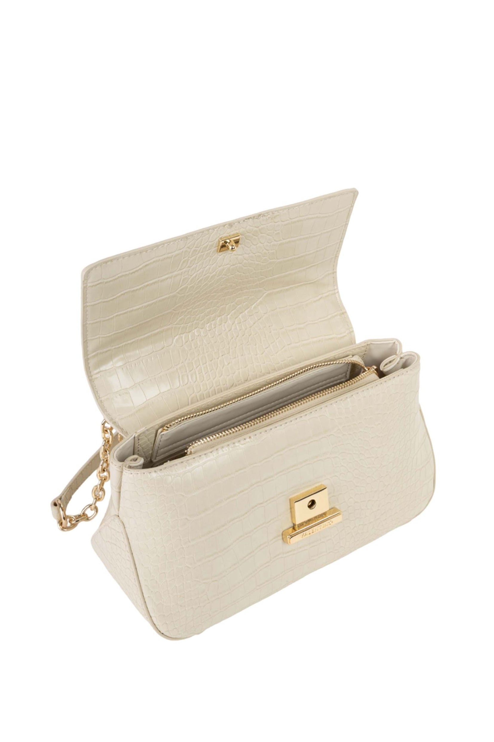 Mala torba iz kolekcije Valentino Bags, izrađena od kvalitetne eko kože sa elegantnim reljefnim dezenom u imitaciji krokodilske kože. Sofisticiran dizajn i praktična veličina čine je idealnim izborom za svakodnevne i večernje kombinacije. Uključena tekstilna zaštitna vrećica štiti torbu od prašine tokom odlaganja.