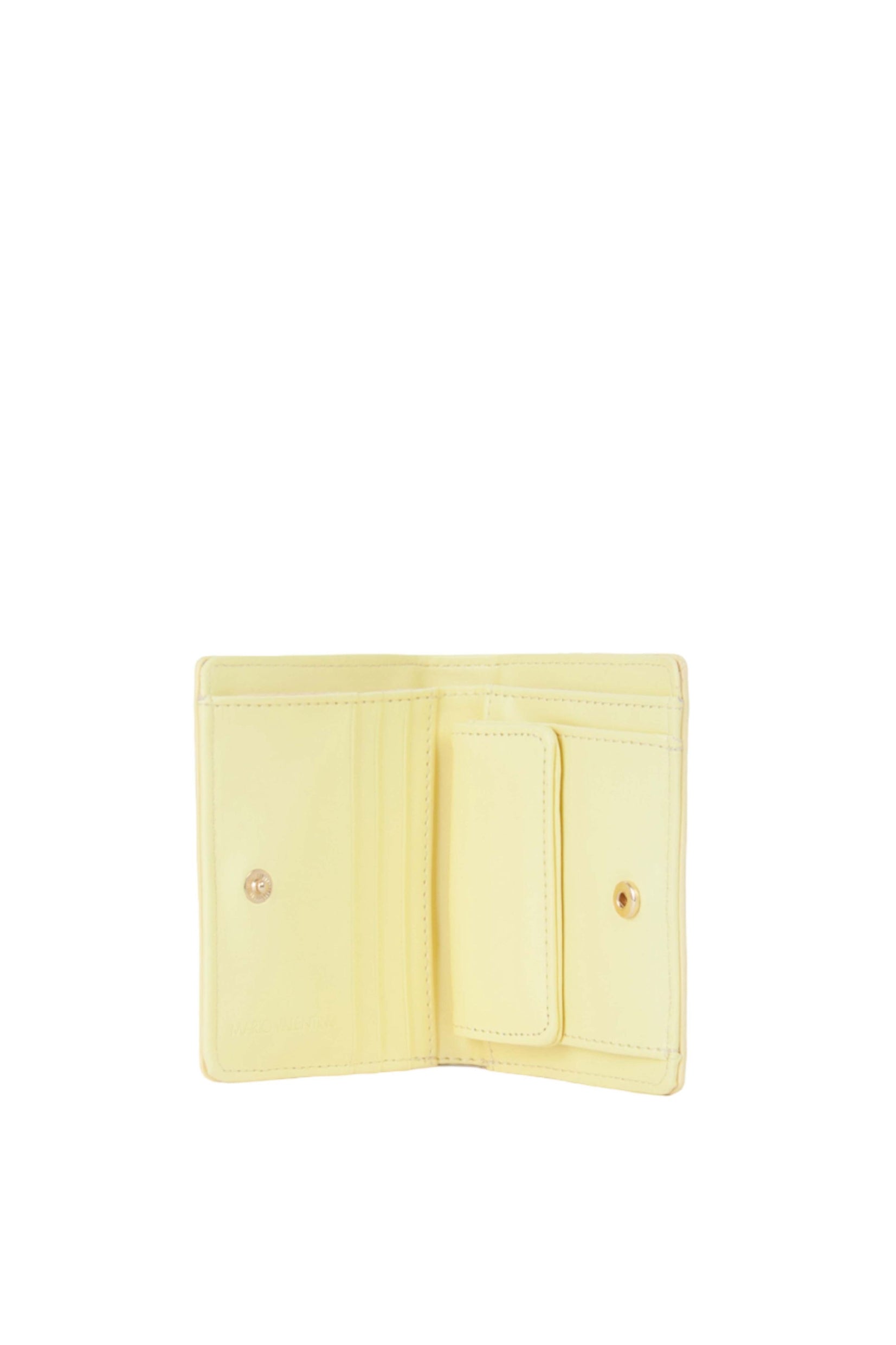 Valentino Delia Re kompaktni novčanik u vanila (svetlo žutoj) boji savršen je svakodnevni saputnik sa pametnom organizacijom i stilskim logo detaljem.