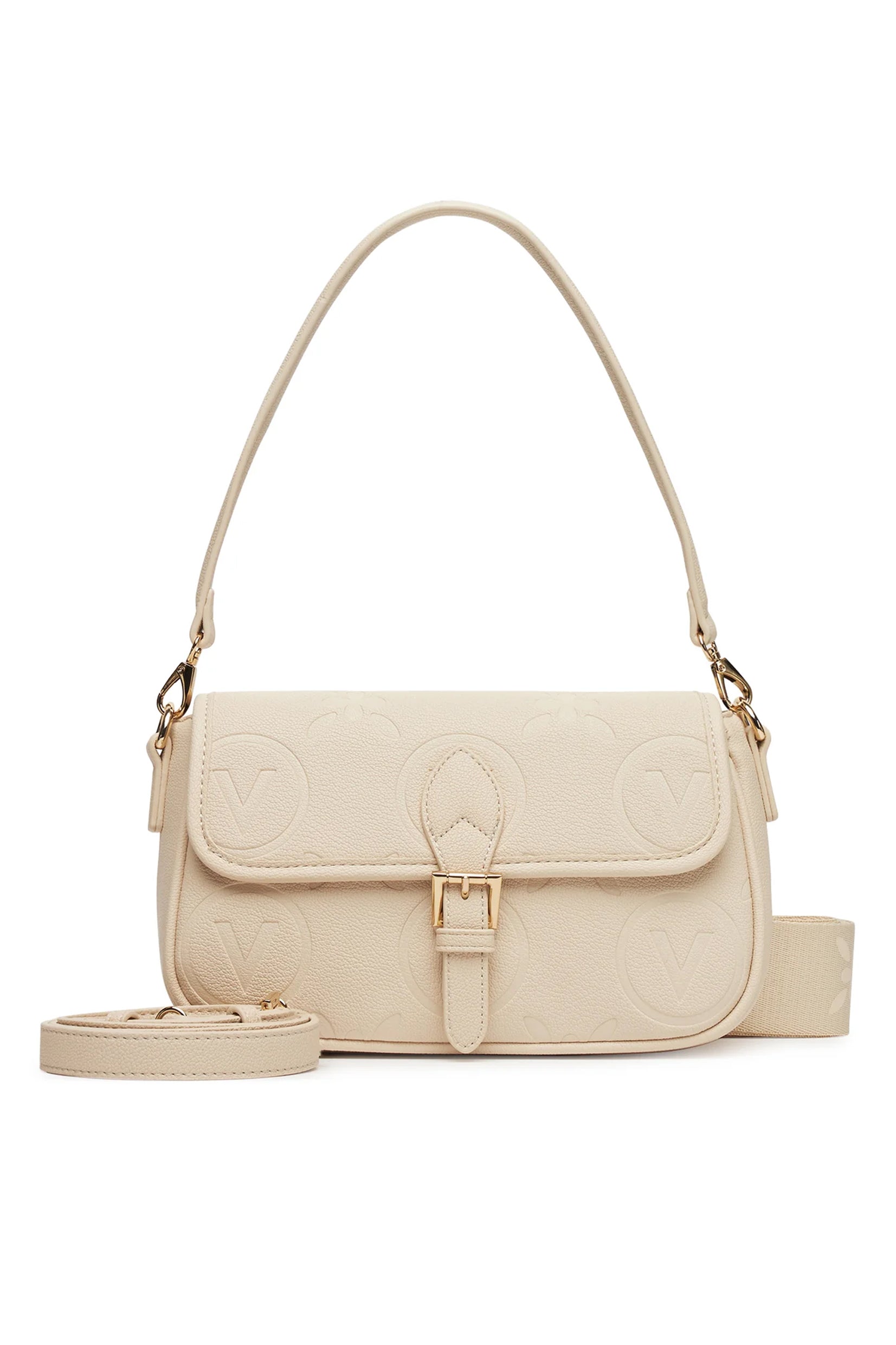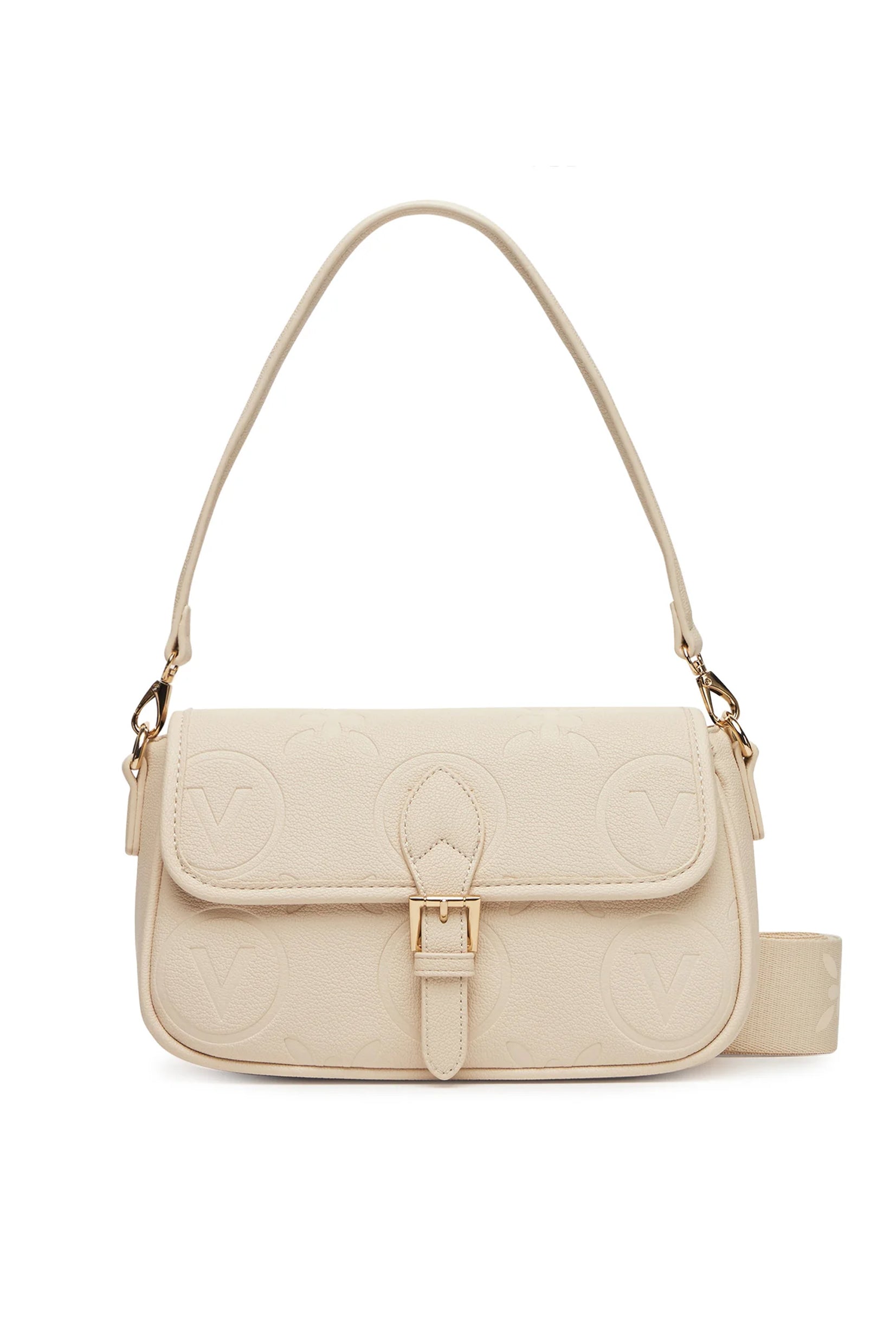 Valentino Samba Re ramena torba savršeno spaja stil i praktičnost sa klapnom i kopčom za brz pristup, all-over logo dizajnom i dvostrukim ramenarom (podesivim/uklonjivim).