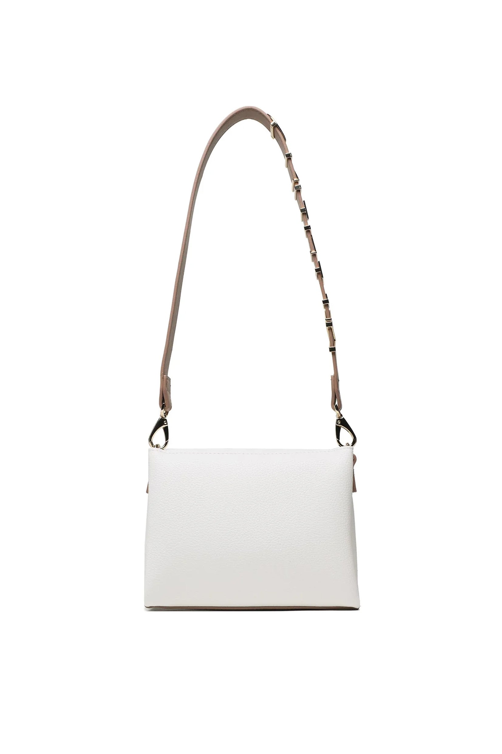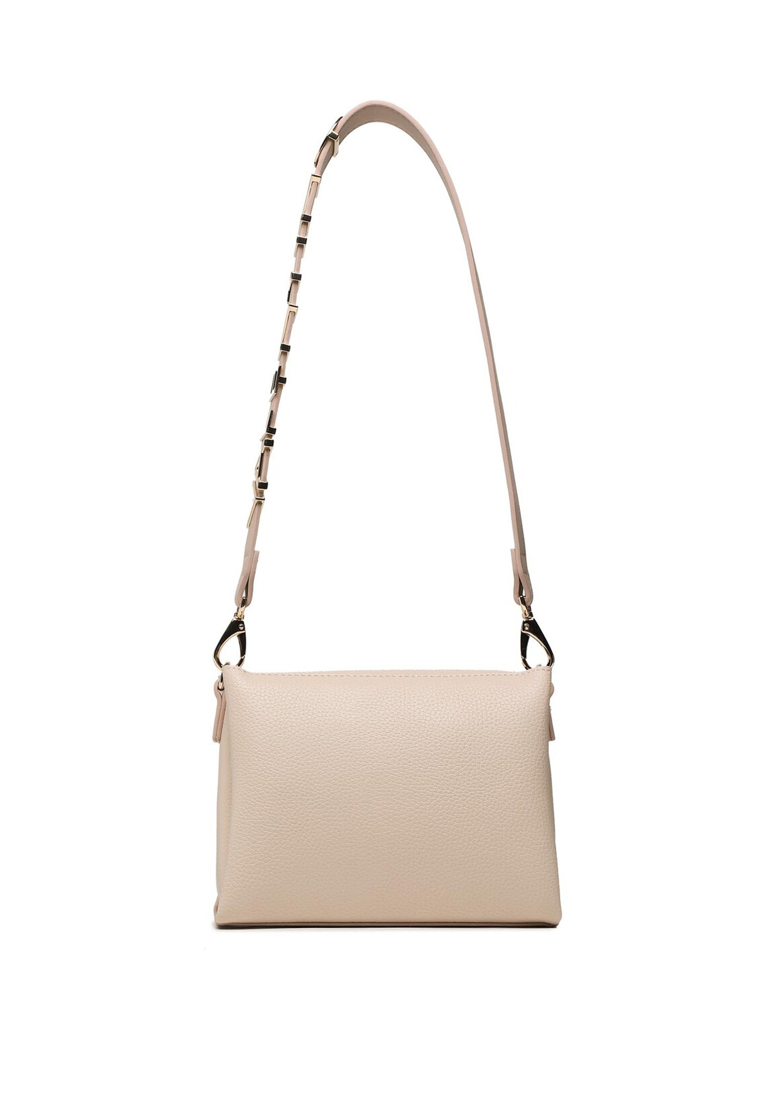 Alexia VALENTINO  Torba je savršen spoj stila i funkcionalnosti. Napravljen od visokokvalitetne premazane kanvas tkanine, kombinuje eleganciju i izdržljivost. Torba ima zatvaranje sa patentnim zatvaračem, preklop i druker, što osigurava da su vaši predmeti bezbedno pohranjeni. Remen je podesiv i odvojiv, što vam omogućava da prilagodite izgled. Možete izabrati između jednostavnog remena ili remena ukrašenog metalnim VALENTINO slovima za dodatni dodir sofisticiranosti.